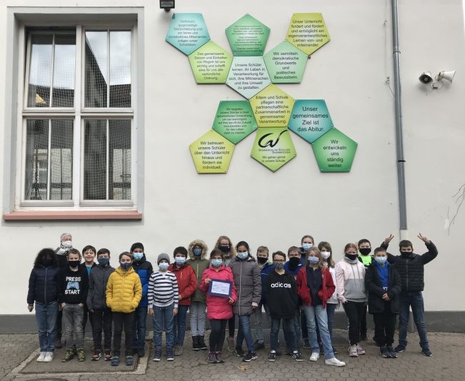 Die Klasse 5b von Frau Planz hat den diesjährigen Wettbewerb der meisten Mitgliedsbeitritte im Förderverein gewonnen. Der Förderverein des Gymnasiums am Schloss bedankt sich recht herzlich klassenübergreifend bei allen Eltern, die dem Förderverein als Mitglied beigetreten sind. Die Aufgabengebiete des Fördervereins sind am Gymnasium am Schloss vielfältig. Neben der Verwaltung und Vergabe der Mitgliedsbeiträge der Eltern (z.B. finanzielle Unterstützung und Auszeichnung von Schülern, Anschaffungen von Lehrmitteln) organisiert der Förderverein die Freiwillige Ganztagsschule, den Pausenverkauf und das Mittagessen im Schulbistro. Außerdem stellt er die Interessenvertretung der Schule in der Öffentlichkeit dar und bemüht sich um das Einwerben von Sponsorengeldern. Am Freitag, den 13.11.2020, wurde der Klasse 5b der „Scheck“ überreicht. Der Förderverein, vertreten durch Frau Gertrud Schmidt als 1. Vorsitzende wünscht Euch viel Spaß bei der Unternehmung, die ihr mit dem Geld durchführt.
