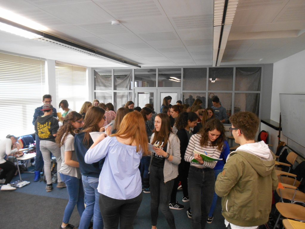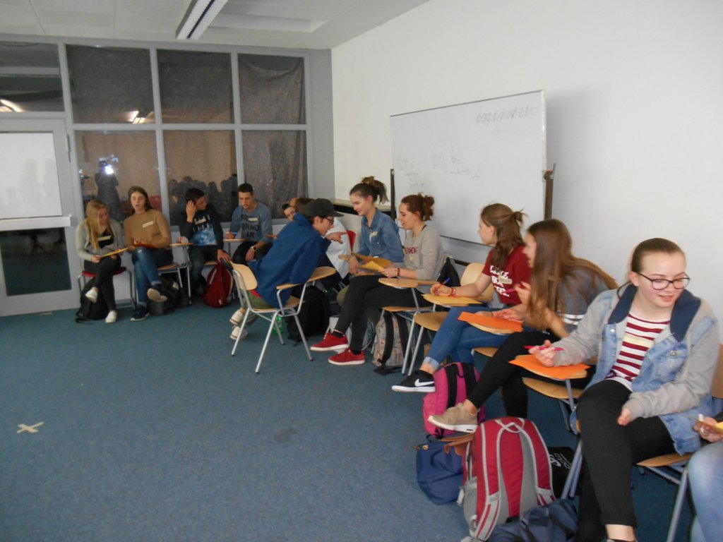 Die Schüler unserer Schule wurden nach der 4. Stunde vom Unterricht befreit, um ihre AustauschpartnerInnen im Bistro zu begrüßen und gemeinsam zu Mittag zu essen. Danach gingen wir gemeinsam zum Raum 007, um uns mit Hilfe von Kennenlernspielen ein wenig näher zu kommen. Um 15:45 Uhr war der Schultag beendet und die Austauschschüler sind zu ihren Gastfamilien gefahren.