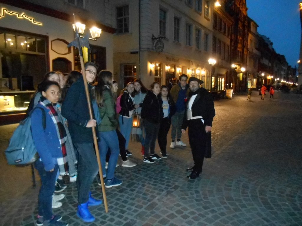 Danach fuhren wir mit dem Bus weiter nach Heidelberg, um dort das Heidelberger Schloss und die Stadt zu besichtigen. Im Anschluss sind wir zur Mensa der Universität Heidelberg gefahren und haben zu Abend gegessen. Nun fand noch eine Abendführung durch die historische Stadt statt.