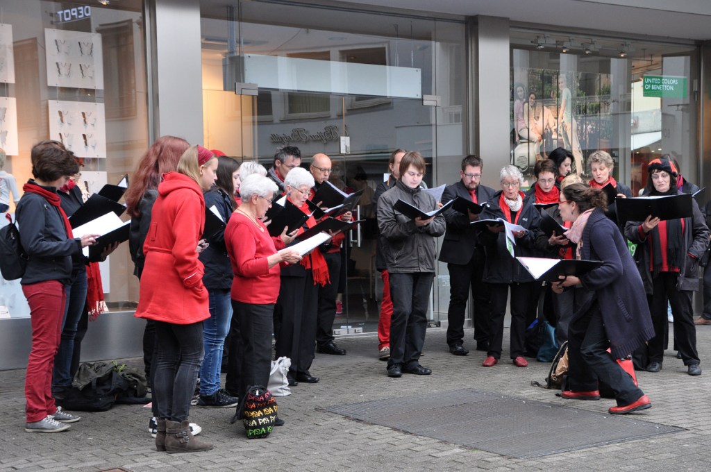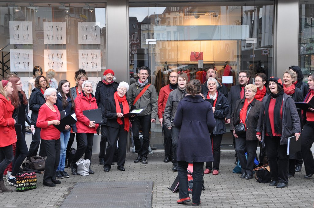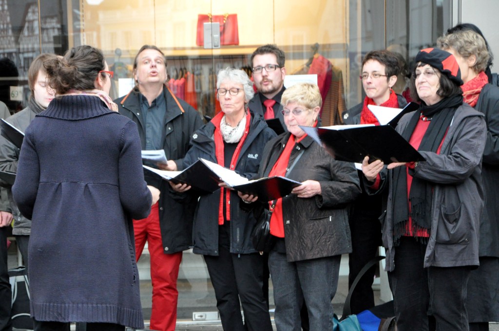 Und wir waren dabei! An zwei verschiedenen Orten haben wir unser – das Wochenende zuvor im Kardinal-Wendel-Haus in Homburg – intensiv geprobtes halbstündiges Sommerprogramm zum Besten gegeben. „Ein außergewöhnlicher Chorsound“, meinte ein Chorleiter aus Aachen, der ebenfalls mit seinem Chor angereist war und zufällig bei uns stehenblieb und zuhörte. Wir hatten auf jeden Fall viel Spaß!!!