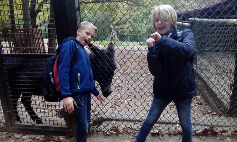 An „unserem pädagogischen Tag“ haben wir einen Ausflug in den Wildpark gemacht und eine Rallye durchgeführt. Wir haben viel gelernt. Zum Beispiel, dass die Entwicklung vom Laich zum Frosch Metamorphose genannt wird, eine Waldohreule bis zu 28 Jahre alt werden kann, der Sperlingskauz eine Größe von 16-19 cm erreicht, der wissenschaftliche Name des Muffelwildes Ovis aries musimon und der des Dammwildes Dama Dama, ist. Außerdem haben wir viel gesehen, zum Beispiel: Das Kaninchen von Alice im Wunderland, unser Klassenzimmer für heiße Sommertage und den „fünften Bremer Stadtmusikanten“. Neben Esel, Hund, Katze und Hahn, gibt es nämlich noch einen: Den Dab. Für alle, die es nicht glauben: Hier die Beweisfotos…