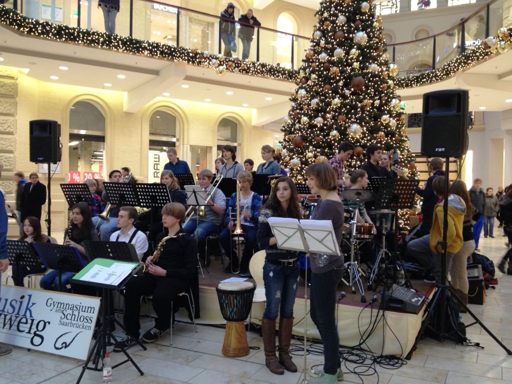 Wer am 21. Dezember zum Weihnachtseinkauf in der Europagalerie unterwegs war, konnte sich nicht nur am Kauf der Geschenke erfreuen, sondern auch an der musikalischen Gestaltung durch unsere Schülerbigband Blue Date.
