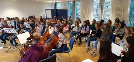 Vom 13. – 15. November fuhren der Unter- und die Damen des Mittelstufenchors (unter der Leitung von Frau Simmler) nach Homburg in das Kardinal-Wendel Haus. 38 Sängerinnen und Sänger probten 3 Tage unermüdlich für das am 3. Adventswochenende stattfindende große Weihnachtskonzert der „Klassiker“. Ebenfalls zur gleichen Zeit und ebenfalls in Homburg probten auch Instrumentalisten des Samstagsorchester unter der Leitung von Frau Stodtmeister.