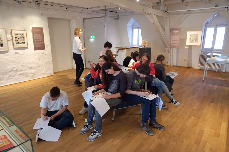 Der Wilde Westen stand damals und auch noch heute im Mittelpunkt solcher Comics, immer noch populär sind welche wie z.B. Lucky Luke usw. Die Führung war so gestaltet, dass auch wir als Schüler selbst viele Informationen unsererseits mit einbringen konnten. Dennoch waren manche von uns ab und zu sehr müde und haben Pausen gebraucht. Eine davon haben wir dann sinnvoll genutzt und haben Mappen über sowohl Hintergrundwissen mit passenden Fragen als auch kreativen Aufgaben für uns bearbeitet.