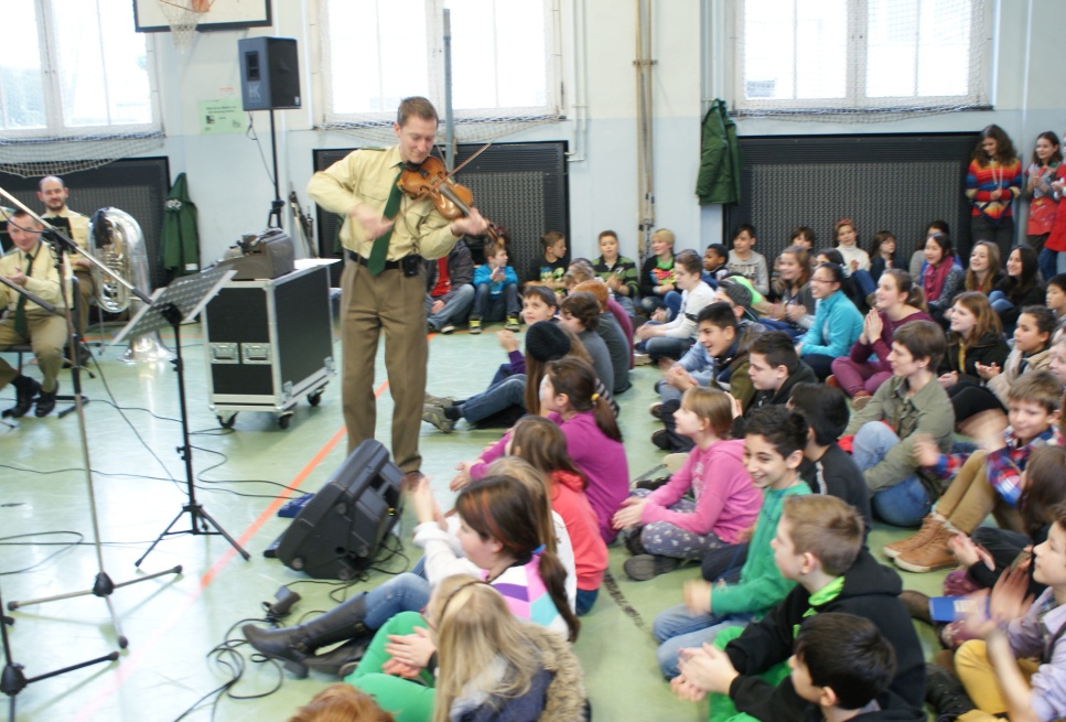Wir lernten viele Blechblas-, Holzblas-, Streich- und Schlaginstrumente kennen und hörten diese in den verschiedenen Stücken mal einzeln, mal als Gruppe live zusammen musizieren. In einem Stück wurde sogar eine Schreibmaschine zum Instrument! Jedes Mal nach einem Stück haben alle Leute geklatscht und gepfiffen. Alle haben es gemocht und bei manchen Liedern konnte man sogar gut im Takt dazu klatschen. Besonders gefallen hat uns das Arrangement von „Fluch der Karibik“ kurz vor Ende des Konzerts, aber danach hat ein Polizist noch den „Jailhouse Rock“ von Elvis Presley gesungen: Das war einfach der große Hammer des Tages und wir hoffen, dass wir so etwas noch einmal erleben dürfen!!!