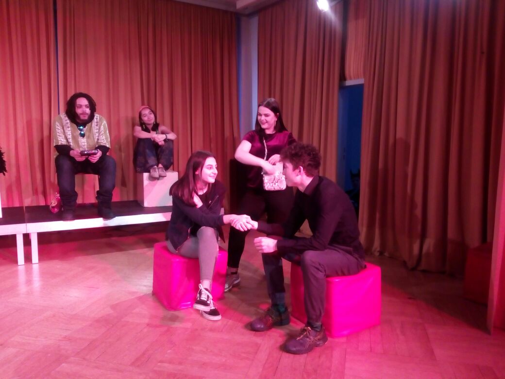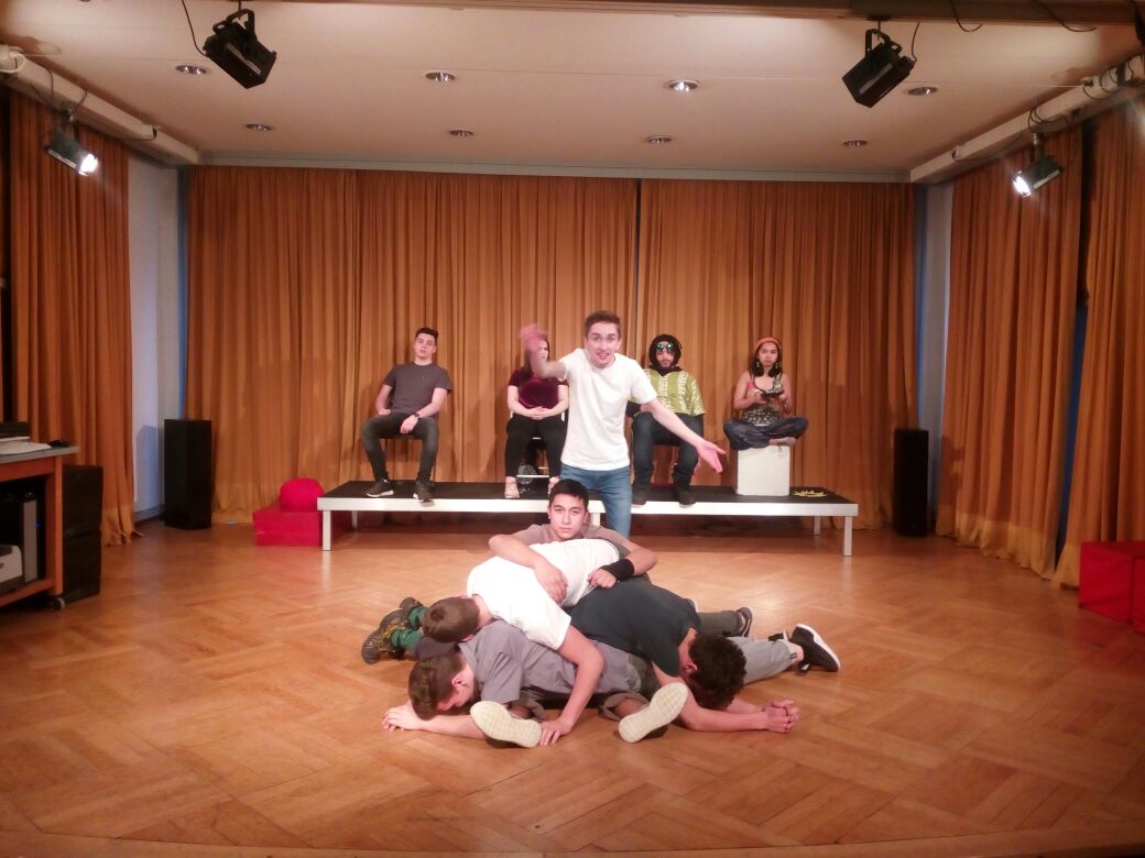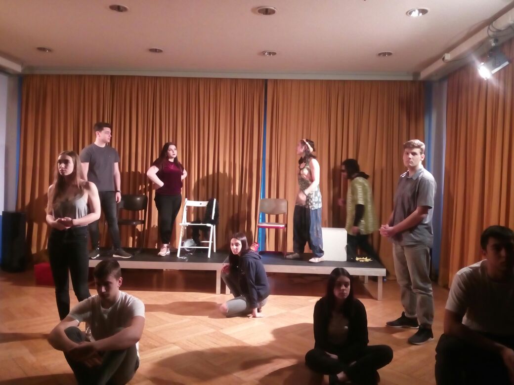 Entstanden ist die Eigenproduktion aus verschiedenen Szenen innerhalb der letzten zwei Jahre des Kurses „Darstellendes Spiel“ von Frau Simon, zusammengeführt und mit einem „roten Faden“ verbunden innerhalb des letzten Kurshalbjahres. Wir möchten uns herzlich bei Felicitas Becher vom Theater Überzwerg bedanken, die die Haupt-Probenphase der letzten Wochen begleitet hat.