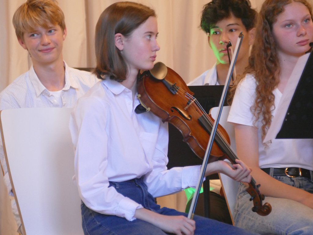 Und er kündigte an, dass an diesem Abend quasi ein Konzert-Triple gespielt werde: Beiträge, die zum Beethoven-Jahr 2020 gedacht waren, Ausschnitte aus dem Weihnachtskonzert, das Pandemie bedingt abgesagt werden musste, und eben das eigentliche Sommermusik-Programm. Dass sich hier nun zwei Schulen und drei Orchester über die Grenze des Bundeslands hinweg zusammengetan haben, sei auch der Hartnäckigkeit und dem Engagement aller Beteiligten geschuldet, die an ihrer Idee festhielten und einen wirklich langen Anlauf nehmen mussten.