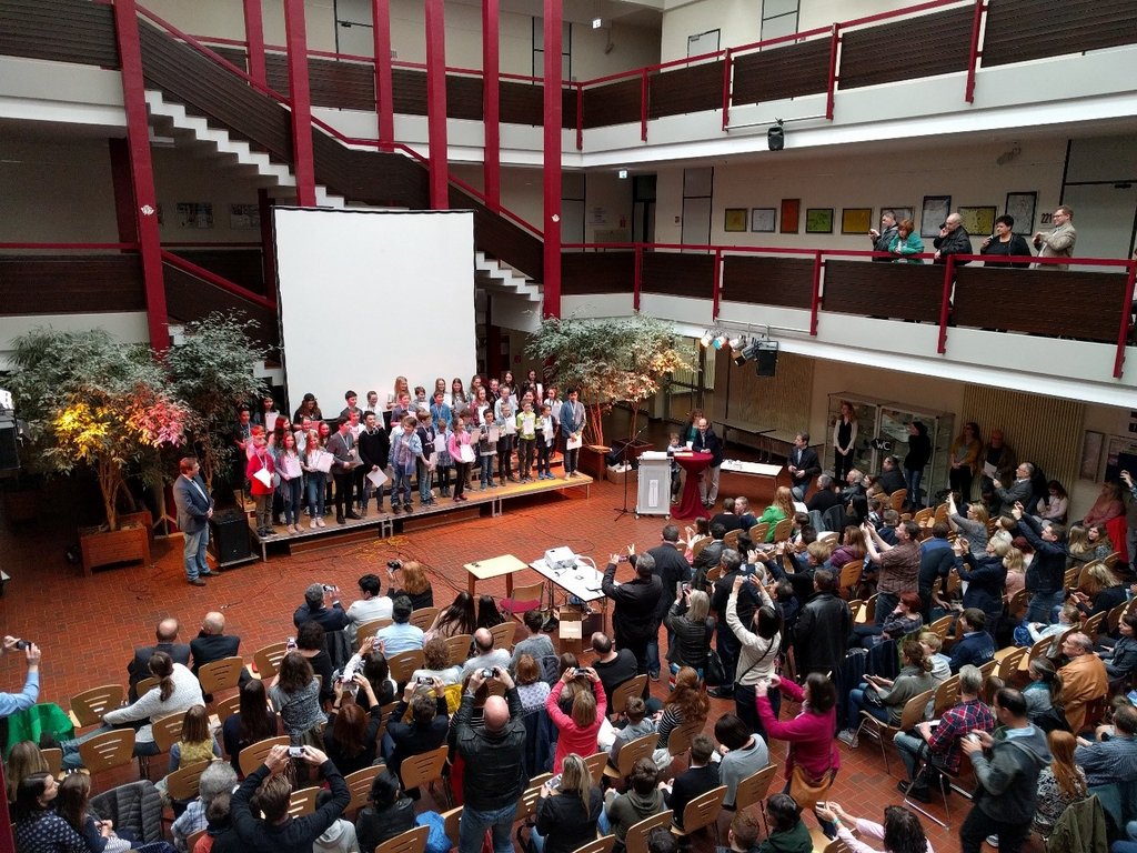 Im Rahmen der feierlichen Siegerehrung am Geschwister-Scholl Gymnasium am 13. April erhielten die Schülerinnen und Schüler ihre Urkunden und Medaillen. Vier von ihnen wurden als beste Teilnehmer des Saarlandes ausgezeichnet und konnten sich in ihrer Altersklasse über den Titel „Landessieger“ freuen.