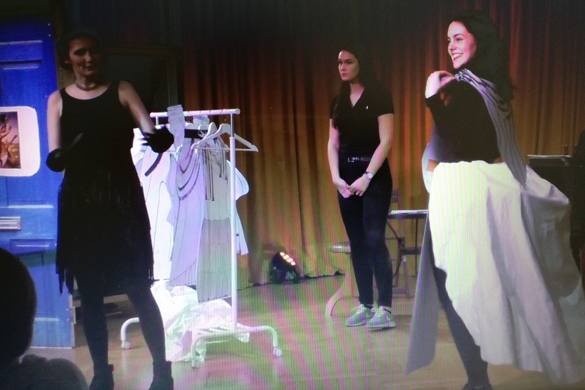 20 Schülerinnen und Schüler haben sich vor eineinhalb Jahren aufgemacht, im Seminarfach „Esprit Montmartre – Paris um 1900“ die Ursprünge des Montmartre zu ergründen und sind dabei bekannten Künstlern wie Picasso, Van Gogh, Toulouse Lautrec, Claude Debussy und Institutionen wie dem berühmten Café Lapin-agile oder dem Moulin Rouge begegnet. Nach intensiver fachwissenschaftlicher Beschäftigung in Klasse 11, haben die SchülerInnen in Klasse 12 nun – quasi als Weiterentwicklung der Themen – einen künstlerischen Abend auf die Beine gestellt. Je eine Gruppe hat sich mit einem bestimmten Aspekt beschäftigt und dazu eine Szene entwickelt. So wurde das Publikum in verschiedenen Tableaux mit auf eine Reise zum Montmartre um 1900 genommen. Moderiert wurde der Abend – wie kann es anders sein – von keinen geringeren als Marie Curie, Sarah Bernhardt, Vincent van Gogh und Claude Debussy alias Leonie Herrmann, Manou Schnabel, Jan Keidel und Oliver Schuh.