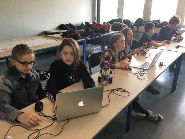 Der Wissenschaftler erklärte uns erstmals, wie man einen Roboter programmiert, dann konnte man eine Viertelstunde alles kurz testen auf einer kleinen Strecke, die mit einem Holzrahmen umgeben war. Anschließend erklärte er uns, wie wir ihm eine ganze Reihe von Aufgaben geben konnten, die er danach nacheinander ausführen sollte. Zum Beispiel konnte man einen Berührungssensor einbauen, den uns der Wissenschaftler gegeben hatte und so konnten wir verhindern, dass der Roboter an eine Wand oder einen Gegenstand fuhr.Maximilian Leonhard (Klasse 7b1)