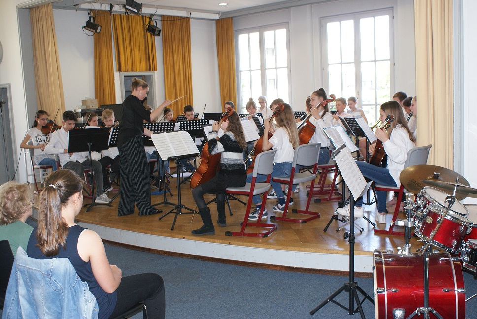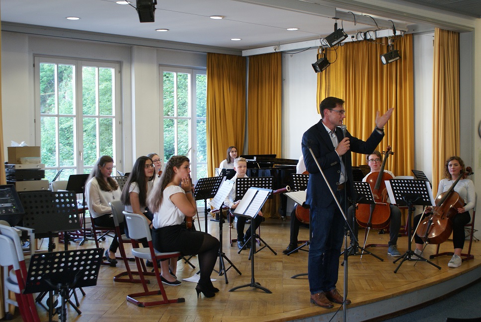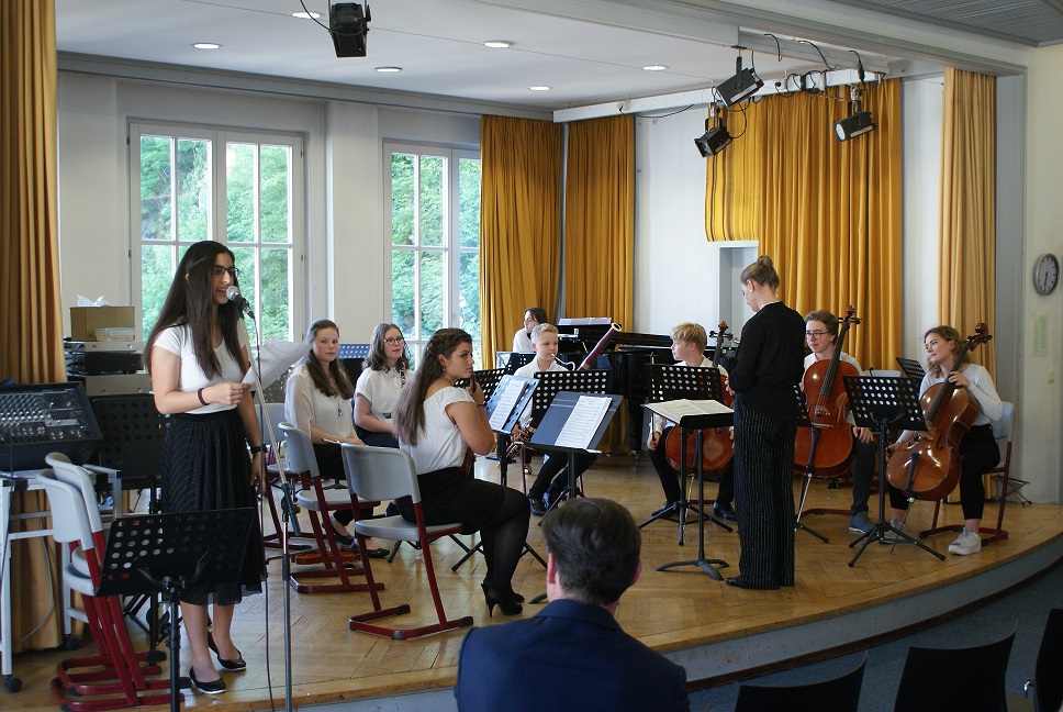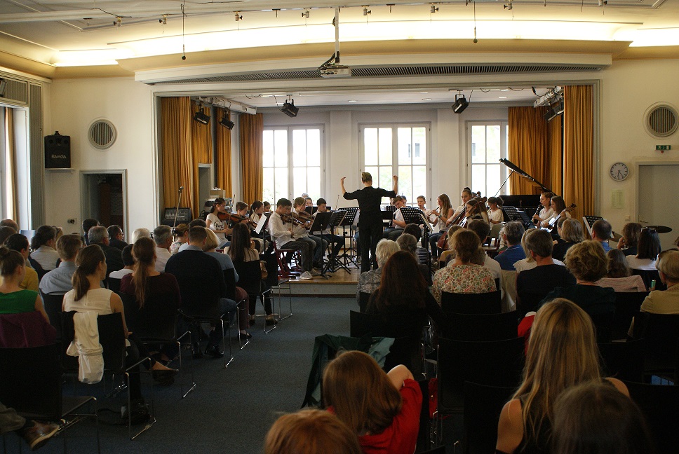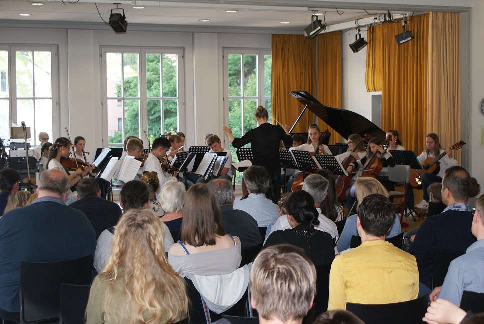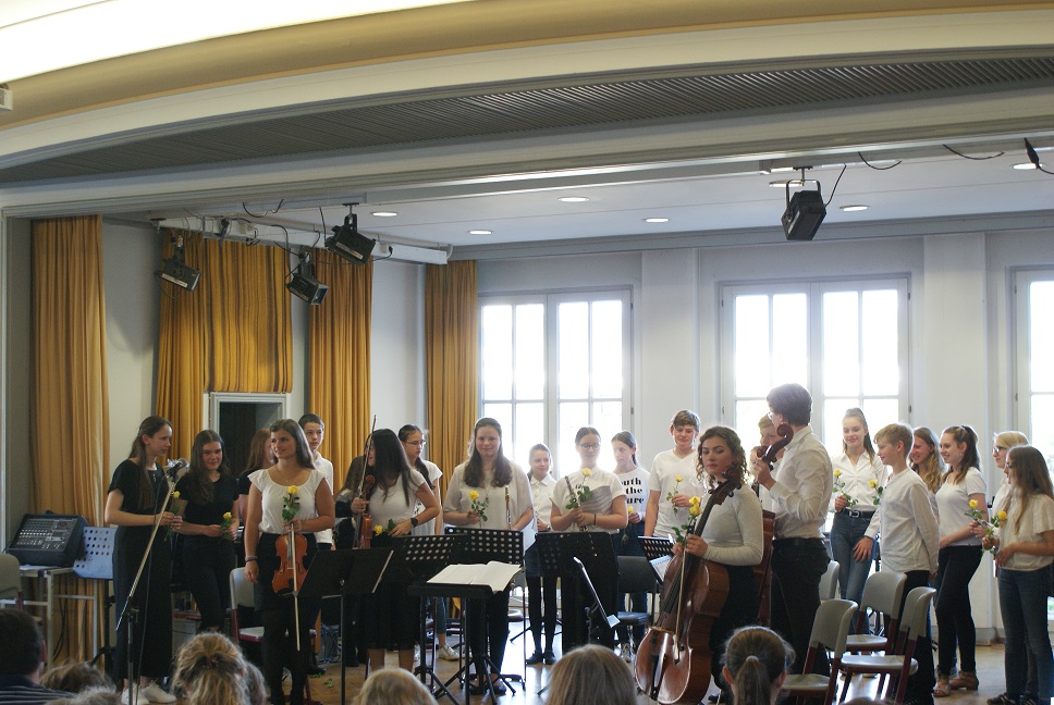 Der zweite Satz der berühmten Klaviersonate “Mondschein” von Beethoven wurde als nächstes in einer Orchesterfassung vorgetragen. Es war sehr beeindruckend, dieses Klavierwerk von einem Orchester spielen zu hören. Zum Schluss spielte das Samstags-Orchester den vierten Satz der kleinen Nachtmusik von W. A. Mozart. Es war ein toller Konzertabend! Die Arbeit hat sich gelohnt, denn das Publikum war begeistert.
