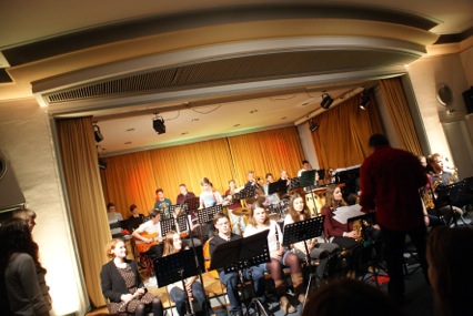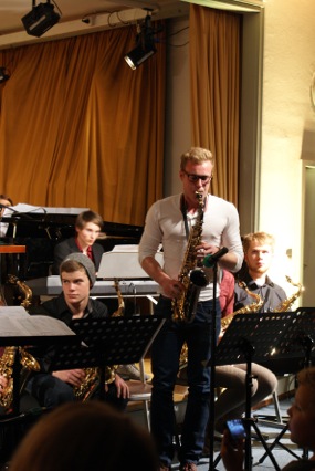 Brechend voll war die Aula am Vorabend des letzten Schultags vor den Weihnachtsferien. Einige mussten stehen, mehr Stühle ließen sich einfach nicht unterkriegen. Andere zogen es vor, sich vor (!) den (offenen) Türen der Aula zu positionieren, da sie befürchteten wegen Hitzekoller oder Sauerstoffmangel zu kollabieren ;). Wörtlich haben wir es genommen, das Motto für das diesjährige Weihnachtskonzert der Nachwuchsbigband Time out, der Percussions-AG Groovin’ Elements und der Bigband Blue Date: “Oh kommet zu Hauf!” und wurden reichlich beschenkt.