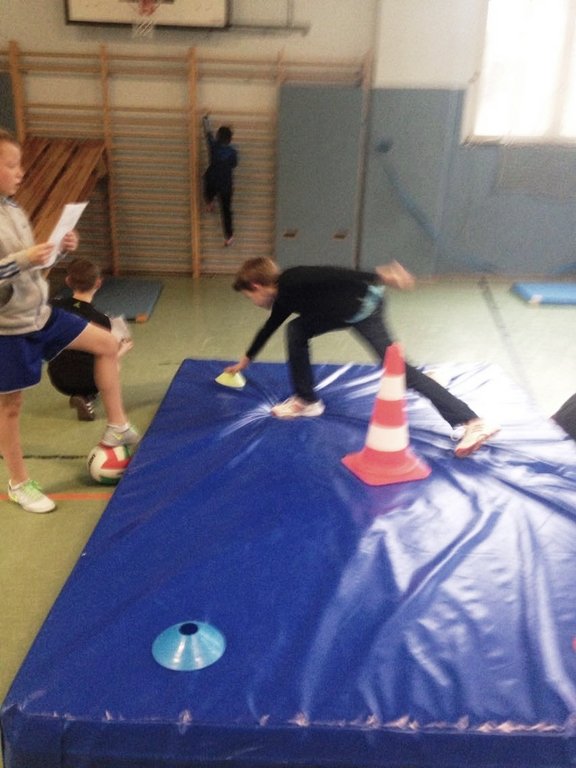 Am schulfreien Donnerstag, dem 27.11.2014 hat unsere FGTS in der Zeit von 08.00 – 17.00 Uhr einen „Bewegungs-und Ernährungstag“ durchgeführt. Dieser begann mit einem spielerischen Ausdauertraining und Ballspielen. Anschließend haben wir mit Haferflocken, Joghurt, Himbeeren, Bananen, Äpfeln, Nüssen und Kokosflocken Müsli zubereitet und gemeinsam gefrühstückt. Für die Zukunft – wenn wir das Projekt wiederholen, was wir hoffen – haben unsere Betreuuer gelernt, weniger Haferflocken und mehr Himbeeren kaufen. Nach dem Frühstück haben wir einen Parcours mit verschiedenen Stationen aufgebaut. Jeweils ein Zweierteam war zuständig für den Aufbau einer Station. Nach dem Mittagessen, es gab Vollkornspaghetti (wenn doch nur das Vollkorn nicht wäre…), haben wir an den unterschiedlichen Stationen Kraft-, Ausdauer- und Koordinationsübungen gemacht. Hier ein paar Eindrücke von unserer sportlichen Betätigung…