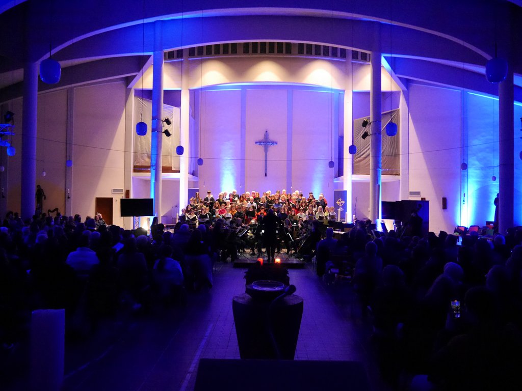 Eine volle Kirche, glänzende Musik und eine besinnlich-fröhliche Vorweihnachtsstimmung: Das Konzert der Chöre und Orchester des Gymnasiums am Schloss hatte dem Publikum in der Saarbrücker Jugendkirche Eli.ja viel zu bieten, unter anderem eine Überraschung für alle. Denn schließlich kommt es nicht so häufig vor, dass der Komponist eines der Werke unter den Zuhörern sitzt – und auch in Andreas Schmittbergers „Missa Kwela“, uraufgeführt 2016, steckte so einiges, mit dem man in so einem Werk eher nicht gerechnet hätte. Schmittberger, geboren in Saarlouis und Lehrer an einer saarländischen Schule, wurde dann auch von Schulleiter Hanns Peter Hofmann noch bevor es losging eigens begrüßt. Hofmann betonte zudem, wie schön es sei, dass das traditionelle Weihnachtskonzert nun wieder in gewohntem Umfang und Rahmen gespielt werden könne – ohne Corona geschuldete Einschränkungen.