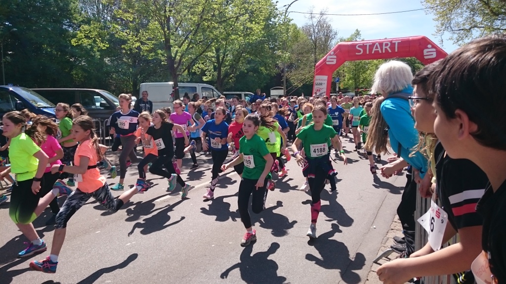 Als wir dort nach kurzer Fahrt ankamen, haben wir uns erst einmal einen Platz im Park des Geländes gesucht. Dort bekamen wir die Startunterlagen, wie Startnummer und Zeitmessungschip, von unseren Lehrern Frau Budinger, Frau Schollenberger und Herrn Klotz. Vor dem Laufen wärmten wir uns auf und versammelten uns anschließend im Vorstartbereich. An der Startlinie machten die Veranstalter nochmal richtig Stimmung. Wir waren alle sehr aufgeregt. Insgesamt starteten 5440 Schülerinnen und Schüler, verteilt auf elf Läufe, getrennt nach Jahrgängen und Geschlecht. Wir gaben alle unser Bestes und erliefen Plätze im Mittelfeld, waren aber auch ganz vorne mit dabei. Besonders herausragend waren die Leistungen von Ava Offermanns (6a) und Clara Meyers (7a). Ava erreichte mit einer Zeit von 9:03,3 in ihrer Altersklasse den 26. Platz. Clara erkämpfte sich mit einer Zeit von 9:07,5 einen hervorragenden 19. Platz. Herzlichen Glückwunsch zu diesen herausragenden Leistungen! (Alle weiteren Ergebnisse sind unter folgendem Link zu finden. In der Suchmaske „Gymnasium am Schloss“ eingeben, um die Ergebnisse unserer Schülerinnen und Schüler angezeigt zu bekommen.)