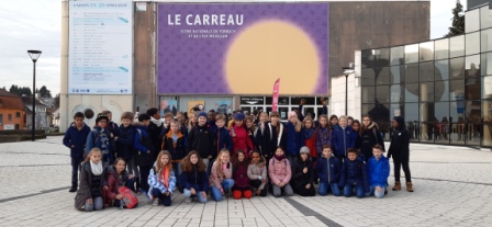 Am Freitag, den 08.11. sind wir – mit unserer Französisch-, Musik- und Klassenlehrerin Frau Simmler – spontan ins Carreau (ein Theater in Forbach, gleich hinter der Grenze, nach Frankreich) gefahren. Um kurz nach 8 haben wir uns vom Gymnasium am Schloss auf den Weg zum Deutsch-Französischen Gymnasium gemacht. Dort wurden wir von den Schülerinnen und Schüler vom DFG erwartet und auf Französisch begrüßt (auch wenn es deutsche SchülerInnen waren, die auch sehr gut französisch beherrschen). Nach einer kurzen Vorstellung (natürlich auf Französisch :)) haben wir uns in den Bus gedrängelt und sind nach Forbach gefahren. Im Bus durften wir uns neben einen Schüler vom DFG setzen und ihm Löcher in den Bauch fragen und anwenden, was wir im Unterricht auch schon gelernt hatten. Als wir in Forbach angekommen sind, hatten wir noch kurz Zeit um etwas zu essen. Dann ging es in den großen schönen Theatersaal. Auf unserer Eintrittskarte stand „Placement libre“. Leider wurden uns dann doch Plätze zugewiesen - von denen aus wir aber auch gut gesehen haben.