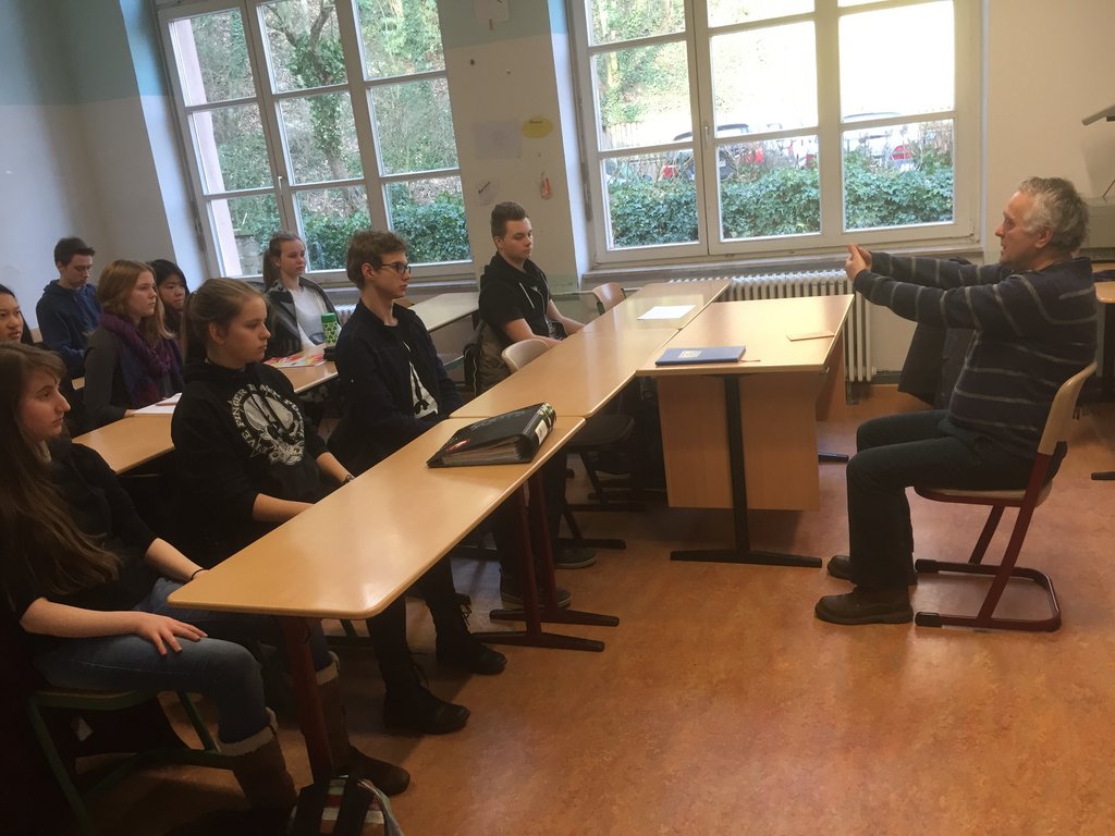 Im Rahmen der Unterrichtsreihe „Buddhismus“ besuchte Prof. Dr. Peter Schmitt-Egner vom Buddhistischen Zentrum Saarbrücken die Lerngruppe der Jahrgangsstufe 10. Nach einem Vortrag stellte sich der praktizierende Buddhist den Fragen der Schülerinnen und Schüler. Als Höhepunkt führte er eine 15-minütige Meditation durch; das klassische „Om“ durfte dabei natürlich nicht fehlen.