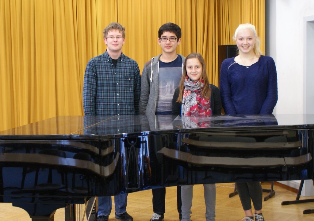 Wir gratulieren unseren Jugend-Musiziert Teilnehmern Anna Kopp (10a1), Karoline Metzger (6a1), Matias Klimpel (11), Robert Nitt (11) und Lisa Glaser (12) [nicht im Bild] zur Erfolgreichen Teilnahme am Landeswettbewerb. Karoline Metzger hat in ihrer Altersklasse mit dem Landeswettbewerb die Endstufe erreicht und sich den hervorragenden ersten Platz erspielt. Die andern Schüler sind – ebenfalls mit Erstplatzierungen – zum Bundeswettbewerb weitergeleitet worden.