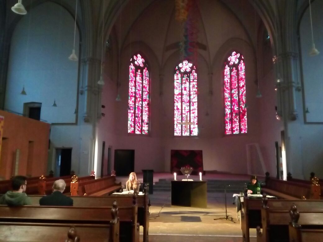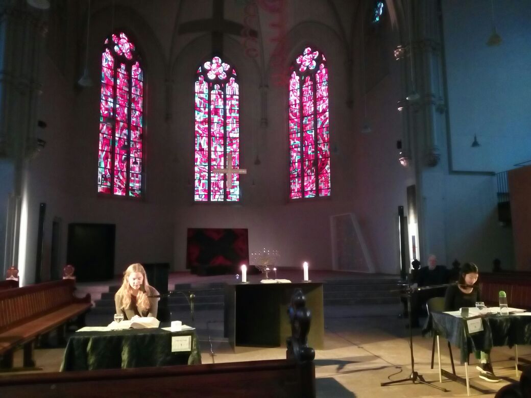 Die Shoa / der Holocaust gilt als das größte Verbrechen der Menschheitsgeschichte und ist nicht in Worte zu fassen und darf niemals vergessen werden. Auch 73 Jahre nach dem Ende der NS-Herrschaft wird die Erinnerung an die Opfer des Nationalsozialismus wachgehalten – eine Erinnerung, die schmerzhaft, vor allem aber sehr wichtig ist. Dies nehmen sich seit vielen Jahren die Verantwortlichen (Christlich-Jüdische Arbeitsgemeinschaft des Saarlandes in Kooperation mit dem Projekt Johanneskirche Saarbrücken und mit Saarbrücker und saarländischen Schulen) zu Herzen und stemmen eine beeindruckende Gedenkveranstaltung in der Johanneskirche in Saarbrücken, an der nun bereits seit sieben Jahren auch das Gymnasium am Schloss aktiv teilnimmt. Drei Schüler der Klassenstufe 12 sowie Frau Simon leisteten durch ihre Teilnahme ihren Beitrag zu der gelungenen Veranstaltung.