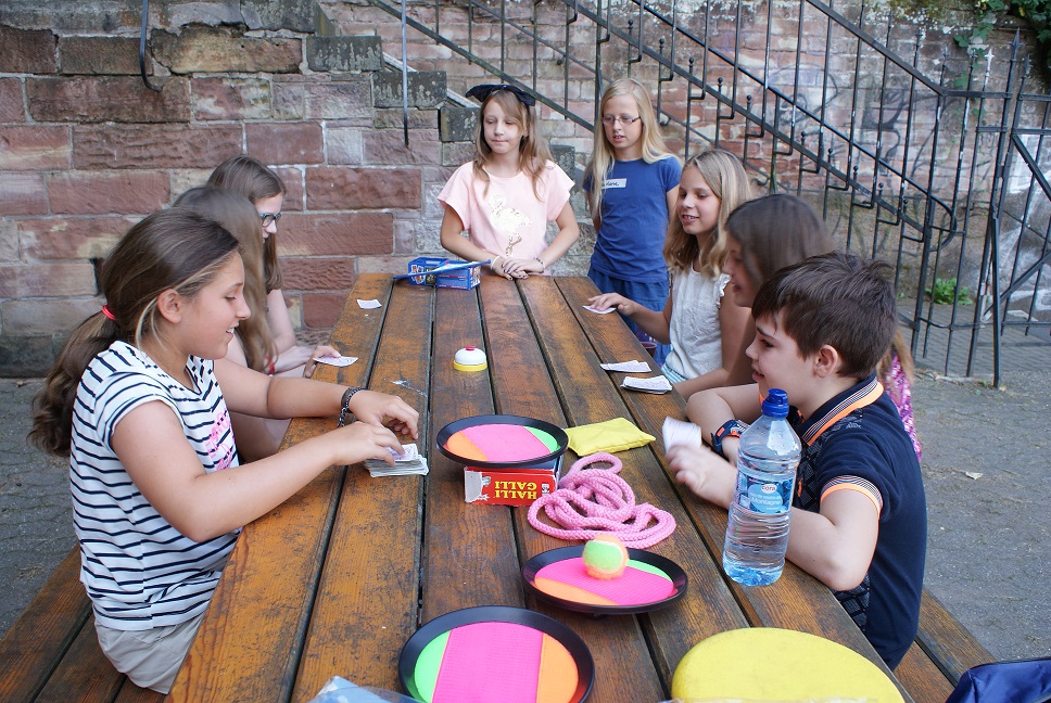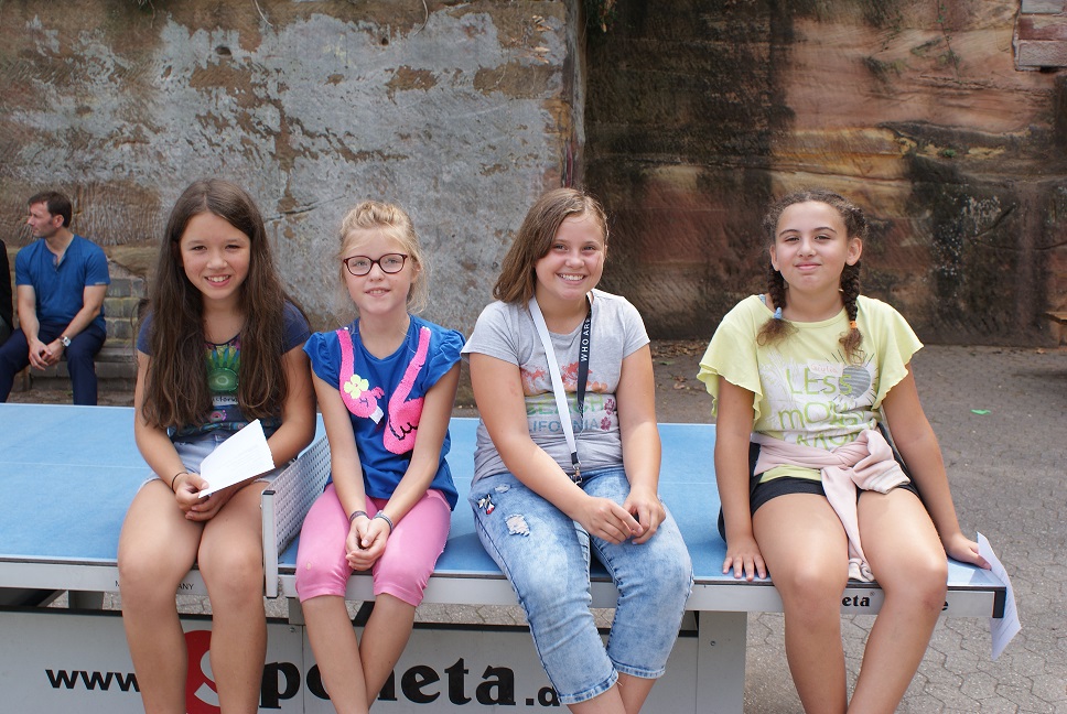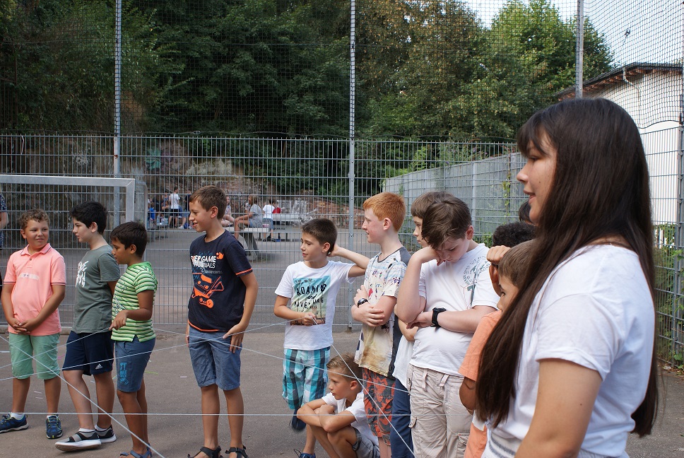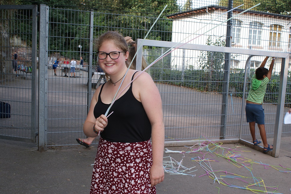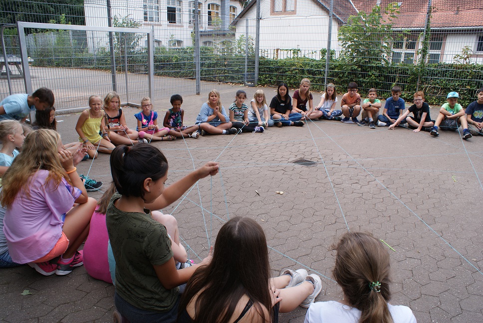 Klassenweise haben die Schülerinnen und Schüler gemeinsam zwei Stunden auf dem oberen Schulhof verbracht. Dabei hat das Wetter wunderbar mitgespielt und uns sommerliche Temperaturen beschert. Zunächst hatten die Kinder die Möglichkeit sich untereinander frei zu beschäftigen. Es standen Brett- und Kartenspiele aber auch Tischtennis, Fußball, Badminton, Seile und vieles mehr zur Verfügung, so dass für jeden was dabei war. In einem anschließenden Spiel ging es darum, kreativ zu sein und in der Gruppe zusammenzuarbeiten. Es galt, aus Plastik-Strohhalmen den höchsten Turm zu bauen. Hier haben sich unsere Schülerinnen und Schüler besonders ins Zeug gelegt und haben sich vieles einfallen lassen, wie auf den Fotos zu sehen ist. Um das Augenmerk danach etwas auf die einzelnen Patenschaften zu richten, haben sich Patenkind und Paten anhand eines kleinen Fragebogen ausgetauscht. Dabei waren Erfahrungen am GaS, Insider-Tips und interessante Geschichten, aber auch persönliche Eigenschaften und Gemeinsamkeiten wichtig. Zurück in der großen Gruppe mit allen Schülerinnen und Schülern gab es zum Schluss eine Feedbackrunde mit einem Wollknäuel. Besonders gut gefallen hat den meisten Kindern die freie Spielzeit, in der sie sich mit ihren neuen neuen Freunden austoben konnten. Aber einig waren sich in einem Punkt alle, nämlich dass sich alle auf ihre Patenschaft sehr freuen und dankbar dafür sind, sich nach sechs Wochen Sommerferien endlich getroffen zu haben.