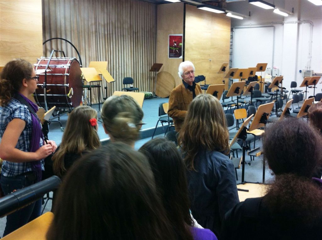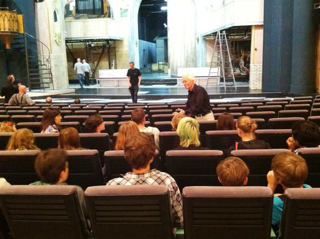 Eine ausführliche Führung mit Horst-Dieter Bächle durch die ansonsten verborgene Welt des Theaters leitete den Besuch ein. Eine Führung mit Herrn Bächle ist nicht einfach eine Aneinanderreihung von Zahlen und Fakten. Dafür war er zu lange selbst in allen möglichen Funktionen am Theater tätig. Jedes Detail kann er durch eine Anekdote lebendig und anschaulich machen. Die Schüler wussten dies zu schätzen und hörten aufmerksam zu.