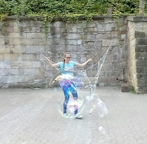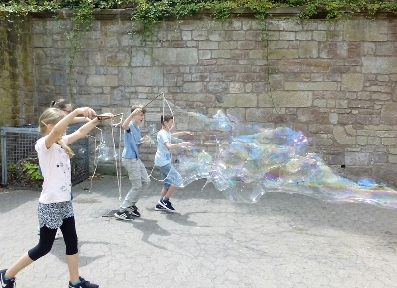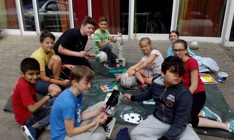 In der dritten Woche der Sommerferien (09.07. – 13.07.2018) führten wir das Projekt: „Pappmaché: Eine dekorative Welt aus Papier“ durch. Wir kreierten hieraus Dekorationsgegenstände wie eine Balletttänzerin, ein Schiff, eine Rakete und die Erde. Des Weiteren fertigten wir Gebrauchsgegenstände wie Schalen, Vasen, dekorative Getränkehalter und Spiegel an. Unserer Phantasie konnten wir hierbei freien Lauf lassen. Am Nachmittag ließen wir riesige selbstgemachte Seifenblasen in die Luft fliegen, stellten unsere eigene Brause her, verzierten uns mit Tattoos aus Theaterschminke und marmorierten. Wir danken Annette Violaine Böhme für das abwechslungsreiche und kreative Projekt.