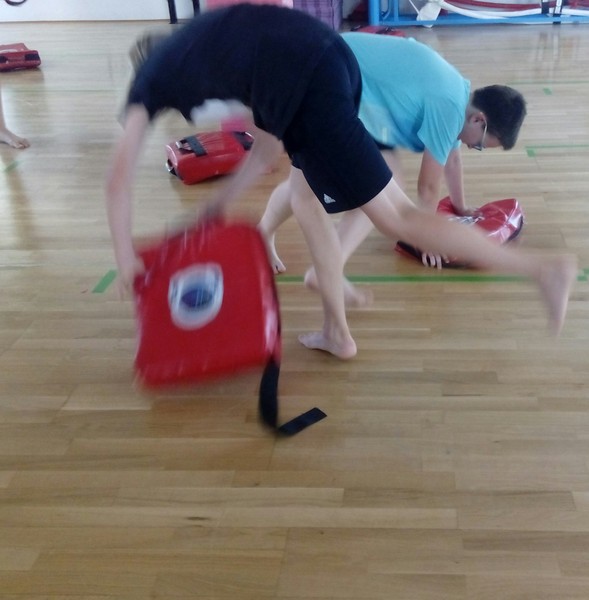 In der zweiten Woche der Sommerferien (02.07. – 06.07.2018) führten wir mit den Schülerinnen und Schülern das Projekt „Fit in den Sommerferien“ durch. In den Räumlichkeiten des Power Out-Zentrums powerten wir uns unter Anleitung professioneller Trainer aus. Die Räumlichkeiten boten zahlreiche Möglichkeiten uns sportlich zu betätigen. Mit Bällen trainierten wir unser Gleichgewichtsgefühl, boxten mit Händen und kickten mit den Füßen, führten mit Schildern Spiele durch, dehnten uns und rangen und rauften im „Ring“. Vielen Dank an das sympathische Team des Power Out-Zentrums.