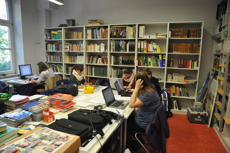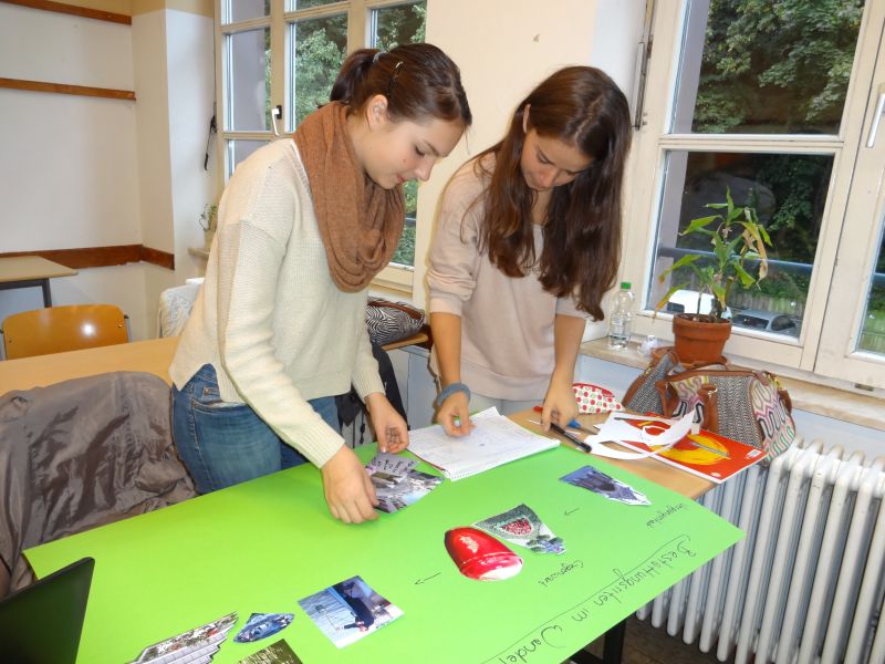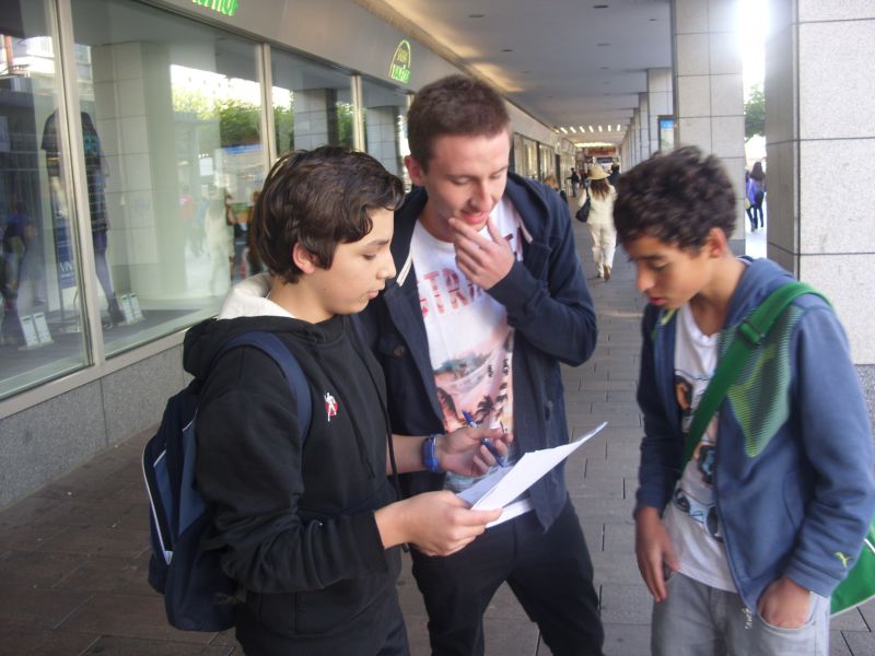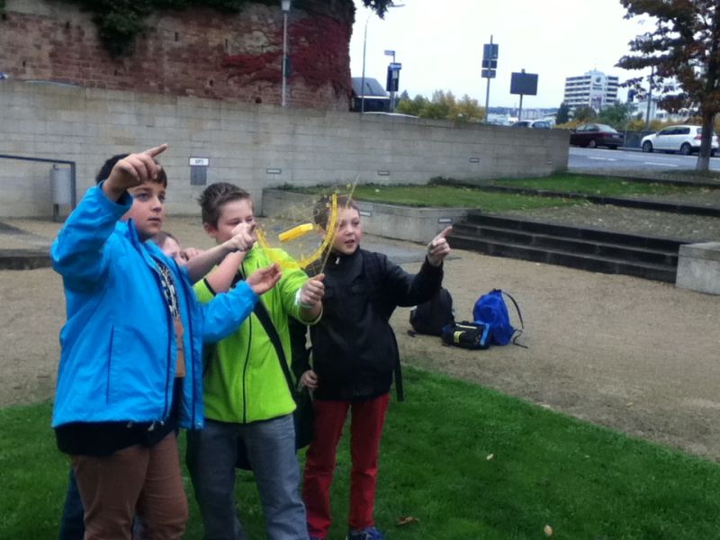 Die Schüler der Unter- und Mittelstufe werden sowohl von Fachlehrer als auch von Schüler der Oberstufe bei ihrer Arbeit begleitet und unterstützt. Nach einer kurzen Einführung im Plenum der einzelnen Gruppen haben sich die Teilnehmer zu den verschiedenen außerschulischen Lernorten in Saarbrücken begeben – die Projektwoche läuft also erfolgreich an!
