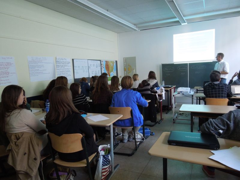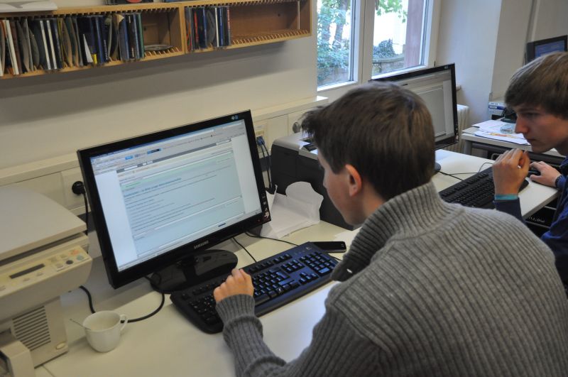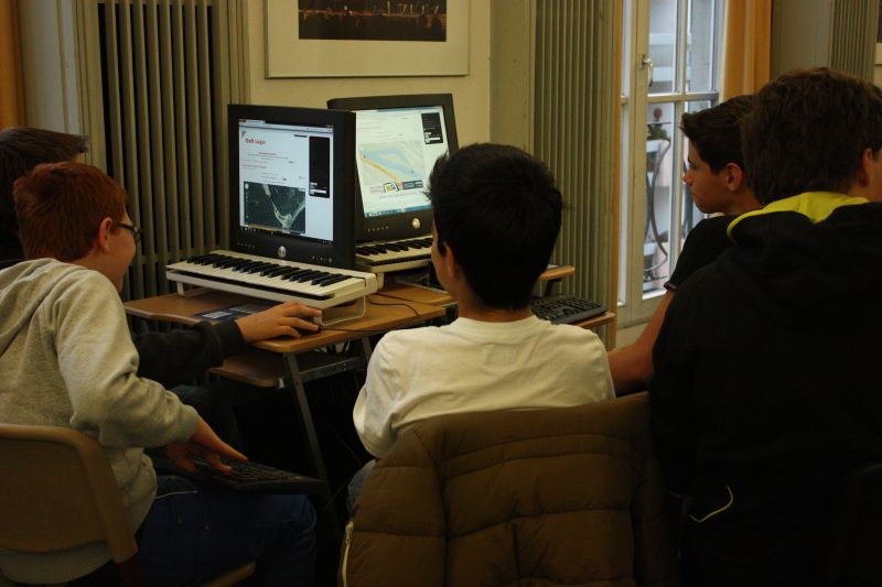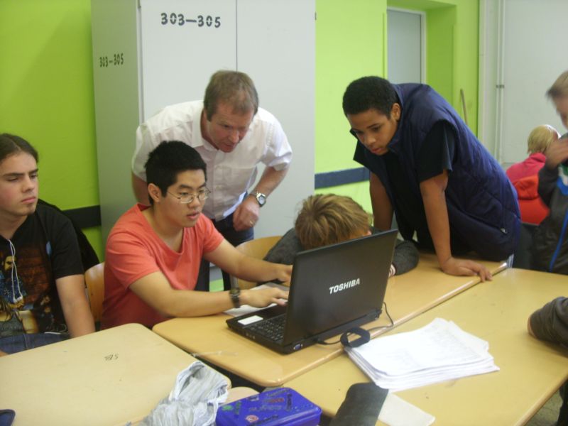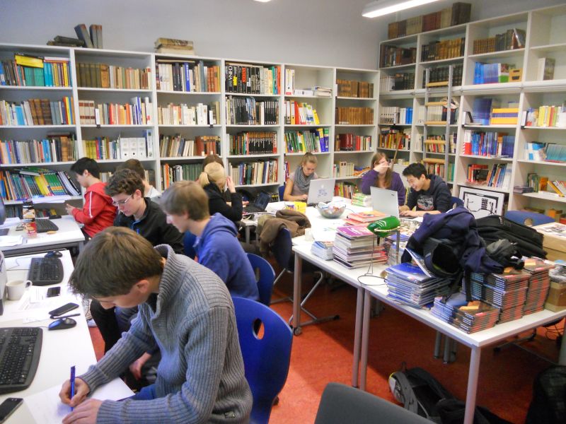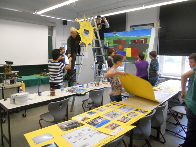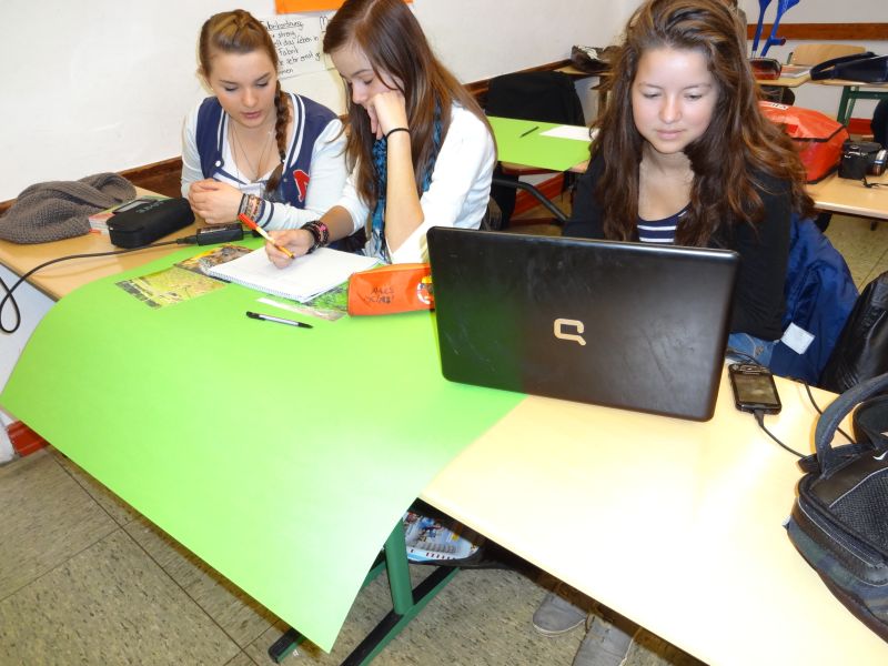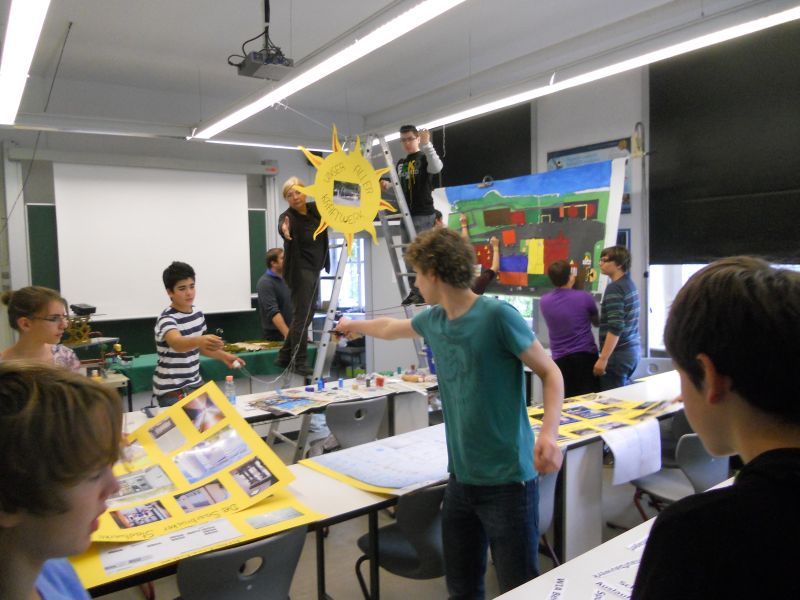 Auch am dritten Tag der Projektwoche sind alle Beteiligten höchst motiviert am Arbeiten. Schulleiter Herr Peter Geckeis dazu: „Der heutige Regen beeinträchtigt die Projektwoche in keiner Weise. Die jungen Leute treiben die Arbeit in ihren Projekten genau so begeistert voran wie bei Sonnenschein!“ Während einige Projektgruppen auch heute wieder außer Haus unterwegs sind, befinden sich erste Projekte schon auf der Zielgeraden. „Sie arbeiten an der Auswertung der bisherigen Befunde, um sie zu Ergebnissen zusammenzufassen“, kommentiert Herr Geckeis.