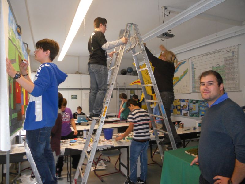 Wer sich am heutigen letzten „echten“ Projekttag vor der morgigen Präsentation durch das Schulgebäude bewegt, stößt auf reges Treiben. „Die Aktivität ist heute ganz hoch im Haus – überall Gewusel, Feinabstimmung, Gespräche und Vorbereitungen für morgen“, kommentiert Schulleiter Herr Geckeis. Im ganzen Haus ist eine positive Stimmung spürbar und alles arbeitet auf die morgige Präsentation hin. „Heute sieht man, dass in den Projekttagen viel gearbeitet wurde und Ergebnisse vorhanden sind, die nun noch in das rechte Bild gerückt werden, dass sie für den morgigen Publikumsverkehr präsentabel sind“, konstatiert Herr Geckeis abschließend.