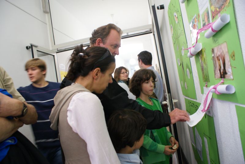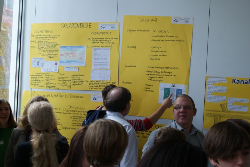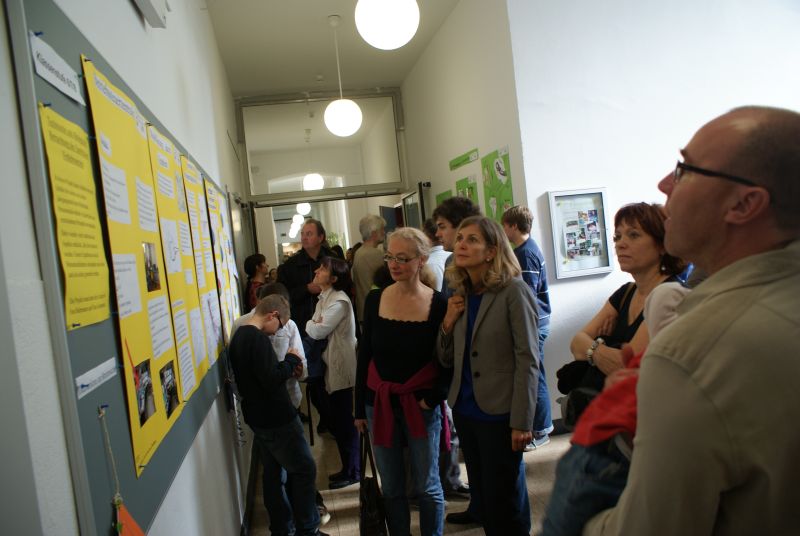 Wildes Gewusel auf den Gängen des Gymnasiums am Schloss: Eltern, Schüler, Lehrer und Besucher bestaunten die erfolgreiche Arbeit der 22 Projektgruppen. Diese stellten ihre Ergebnisse durch Plakate, Bilder, Statistiken, Modelle wie auch szenisches Spiel vor. Die Schüler standen Interessierten Rede und Antwort und berichteten stolz von ihren Ergebnissen.