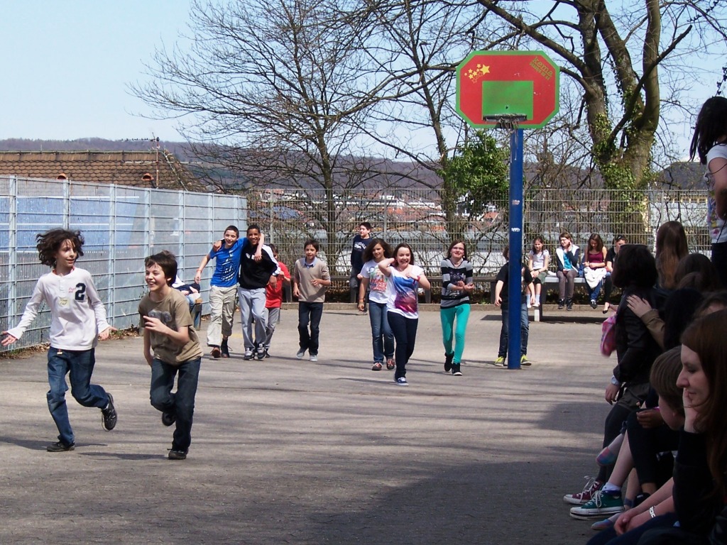 Bis zur Abfahrt der Franzosen gegen 14:30 Uhr hatten die Schüler Gelegenheit, ihren Austauschpartnern die Schule zu zeigen, mit ihnen zu spielen und E-Mail-Adressen sowie Telefonnummern auszutauschen. Die Zeit bis zum Rückbesuch der 6a1 in Sarreguemines (am 20. Juni) wird dadurch hoffentlich schnell überbrückt.