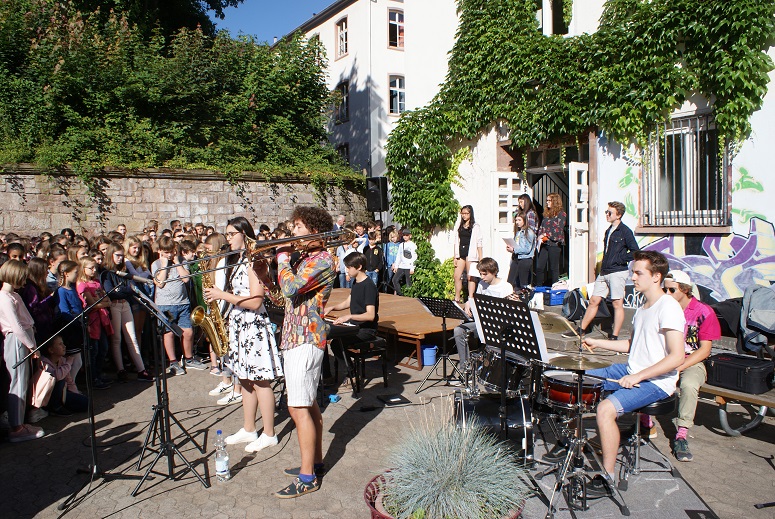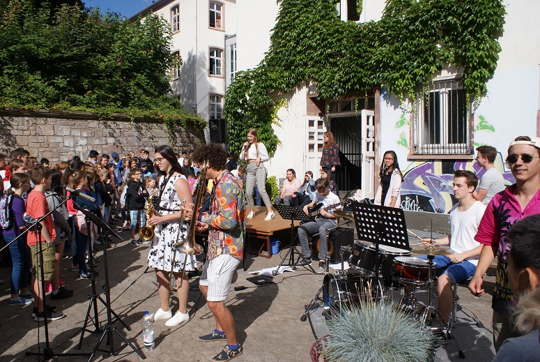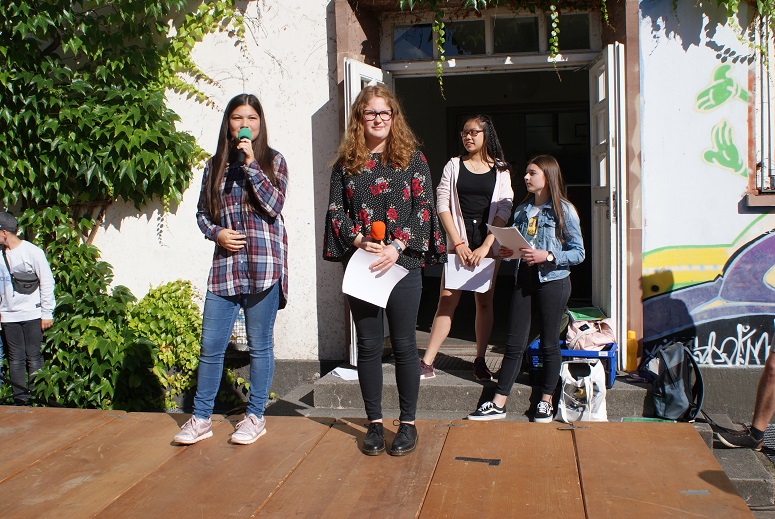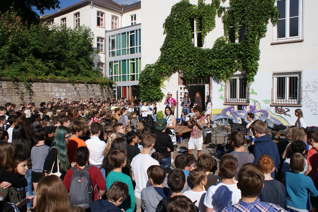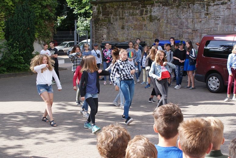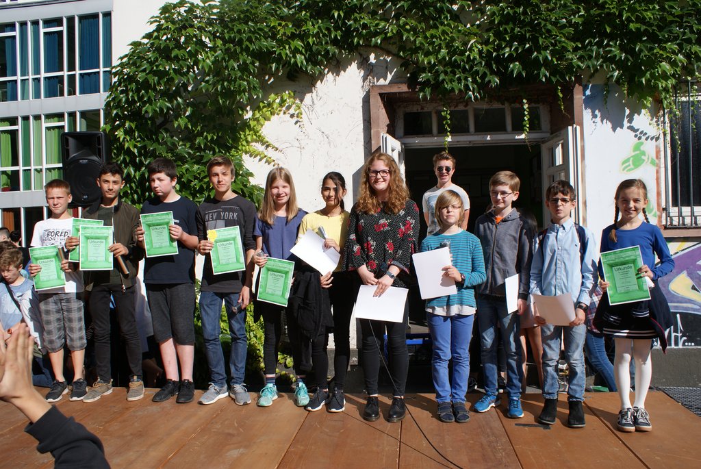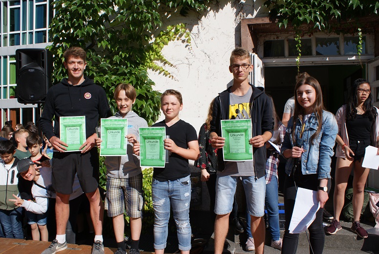 Am letzten Schultag fand die alljährige Schülerehrung statt, auf die sich alle Schüler gefreut haben, zumal sie das Ende des Schuljahres und den Beginn der heiß ersehnten und verdienten Ferien ankündigt. Bei angenehmen Temperaturen und Sonnenschein haben sich Schüler- und Lehrschaft auf dem unteren Schulhof versammelt. Wie jedes Jahr wurde die Moderation von der SV übernommen, die vielen Mitschülern für ihre herausragenden Leistungen die Hände schütteln durfte. In den verschiedensten Kategorien von Sprachen über Mathematik und Musik bis hin zu Sport und sozialem Engagement waren Schülerinnen und Schüler aller Klassenstufen vertreten (siehe PDF-Dokument oberhalb). Musikalisch begleitet wurde die Veranstaltung auch dieses Mal von der Combo unter der Leitung von Herrn Ernst. Neu dabei war die Tanz-AG, geleitet von Katharina Brückner und Daria Makarova, die einen tollen Auftritt hingelegt hat. Im Namen der SV möchten wir uns für unsere Ehrung bedanken. Wir haben dieses Schuljahr das, was wir uns vorgenommen haben, erreicht und sind froh, etwas zur Schulgemeinschaft beitragen zu können. Für uns war die diesjährige Schülerehrung somit auch ein gelungener Abschluss dieser Wahlperiode. Wir blicken einem neuen Schuljahr entgegen und hoffen, dass sich die kommende Schülerehrung ebenso erfolgreich und abwechslungsreich gestalten wird.