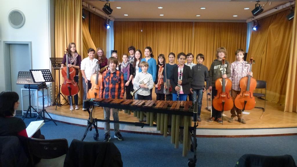 Ernste Töne – unterhaltsame Töne, zart – kraftvoll, getragen – leidenschaftlich, von der Blockflöte zum Schlagzeug, weiter zum Cello und neu diesmal ein Marimbaphon… Dem Publikum wurde am Sonntag, den 24.11.2013, eine spannende Matinee geboten von Schülerinnen und Schülern der fünften bis achten Jahrgangsstufe. Aus jedem Werk wurde ein Stück lebendige Musik, mal wurde es ruhig im Saal, mal gab es etwas zum Schmunzeln. Den fröhlichen Abschluss gestaltete eine Gruppe von neun Schüler/innen, die sich im Wohnzimmer eines musizierenden Schülers zusammengefunden hatte, dort übte, und mit “Zirkus Renz” auf die Bühne ging.