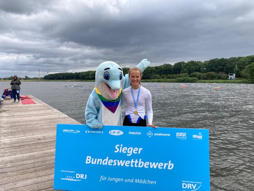 Anneke Ihmann (8a) konnte im Leichtgewichts-Mädchen Einer sowohl die Langstrecke am Freitag über 3000m wie auch die „Bundesregatta“ über 1000m am Sonntag mit jeweils der deutlich schnellsten Zeit aller Läufe gewinnen.