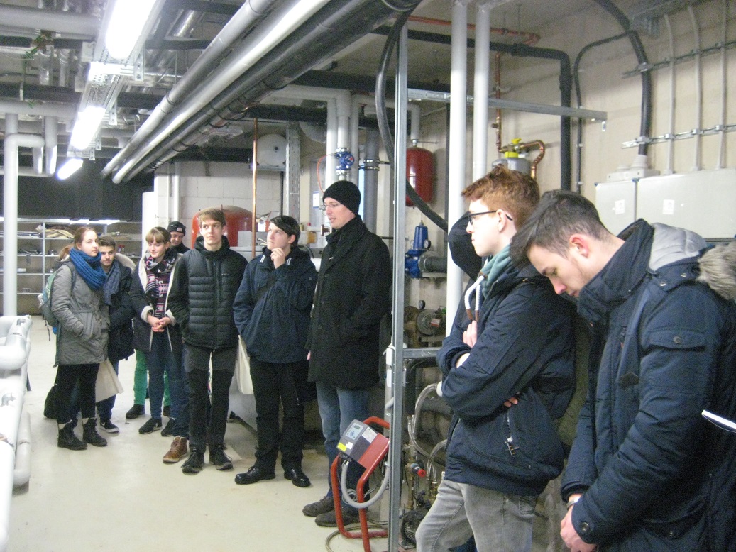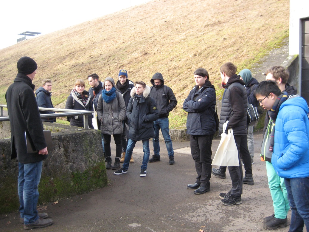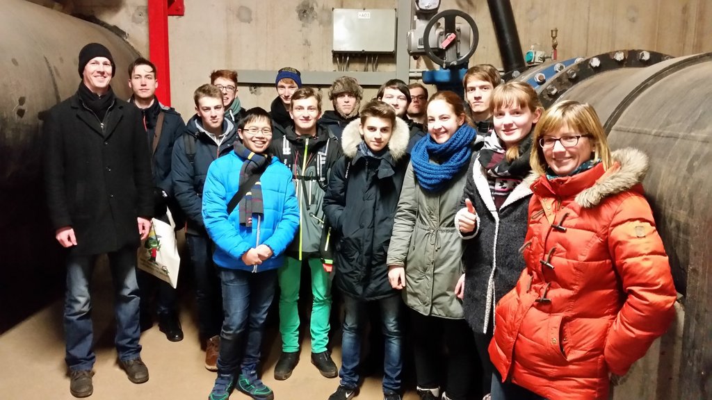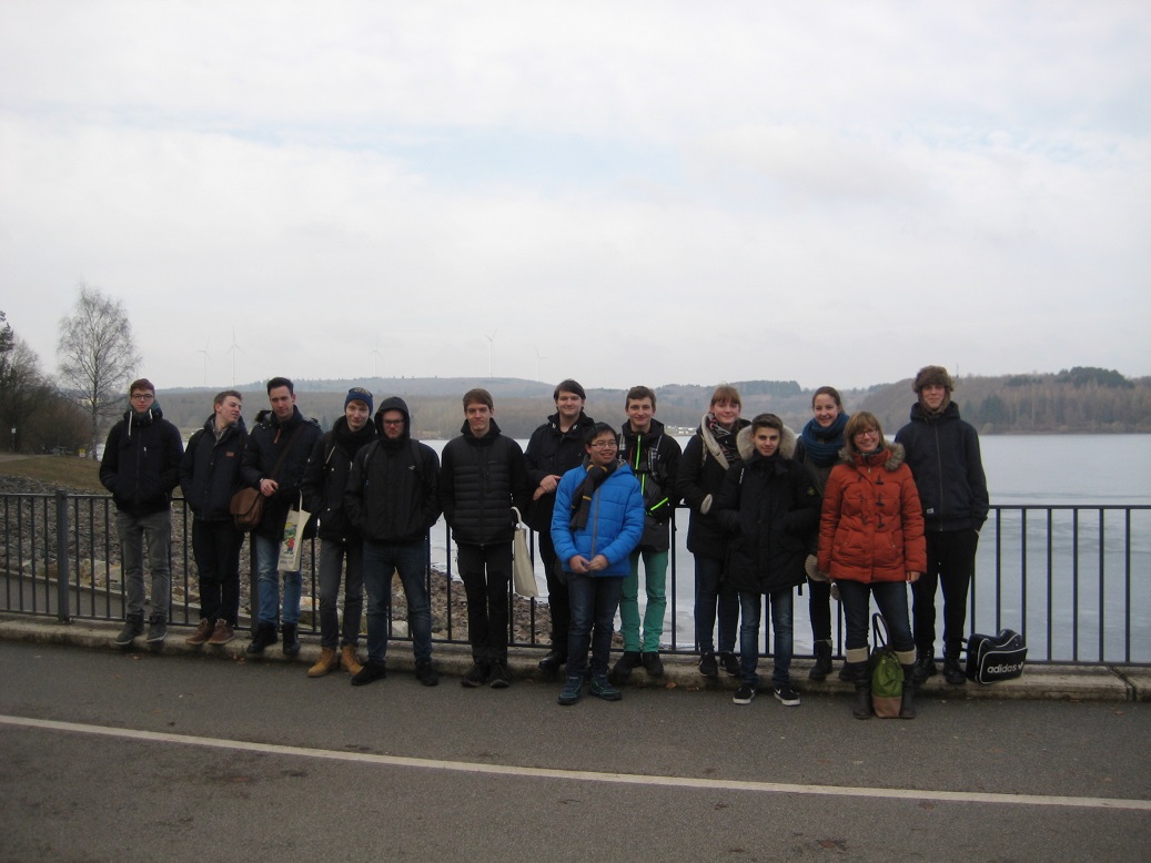 Ein Teil unserer Arbeit in Seminarfach im Schuljahr 12/2 war eine von uns, für den ganzen Kurs geplante Exkursion zum Bostalsee, die am 09.02.2017 stattgefunden hat. Wir sind mit Bahn und Bus zum Bostalsee gefahren, wo wir von Herrn Welter empfangen wurden. Herr Welter hat uns zunächst zur Solarhalle geführt, und uns den Raum mit den Wechselstromrichtern der Photovoltaikanlagen gezeigt. Dort hat er noch einige Worte zum Landkreis St. Wendel und seinem Einsatz für erneuerbare Energien im allgemeinen gesagt. Die nächste Station war eine der 3 Sanitäranlagen am Bostalsee, in der Nähe der Campingplätze, die fast Komplett durch die Solarthermieanlagen auf dem Dach betrieben werden kann. Danach begann der längste Fußmarsch: wir umwanderten den See ein halbes Mal, um zum Staudamm zu gelangen. Im innern des Staudamms sahen wir die Industriepumpe, welche umgekehrt angeschlossen, als Wasserkraftanlage dient.