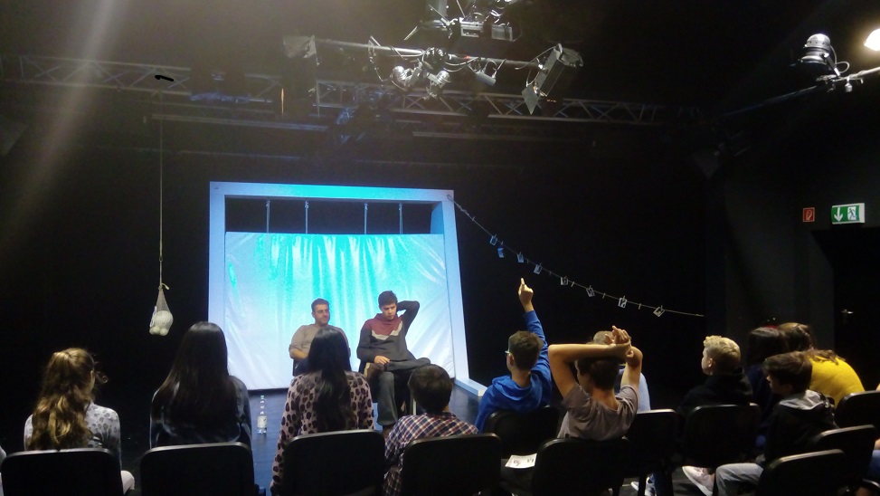 In einem mehr als halbstündigen Nachgespräch zeigten sich die Schülerinnen und Schüler sehr interessiert und die beiden Schauspieler durften jede Menge Fragen beantworten.