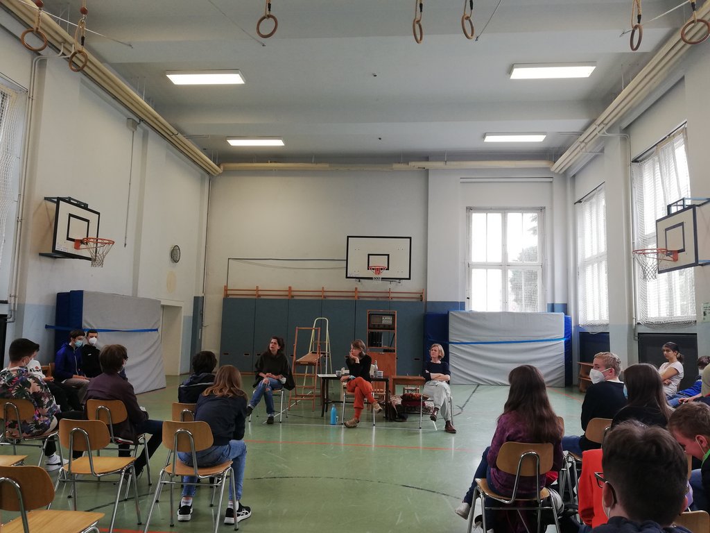 Das merkte man auch unseren Schüler*innen an, die konzentriert zuschauten und das Nachgespräch mit der Theaterpädagogin Felicitas Becher für zahlreiche Fragen nutzten.