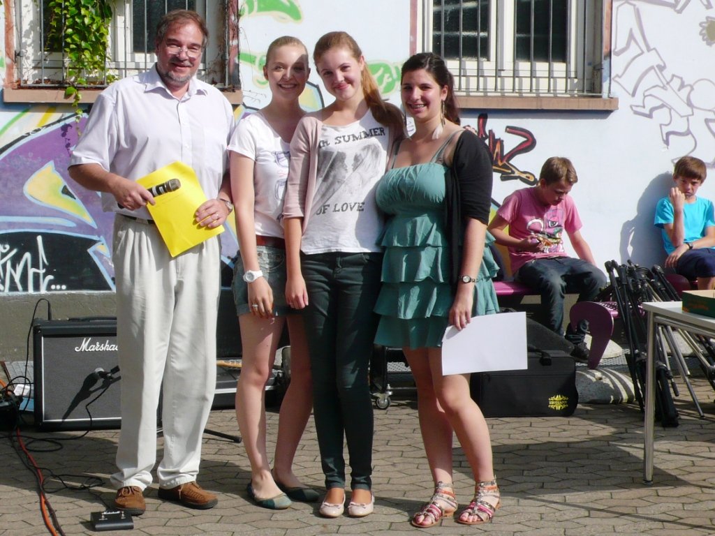 Am letzten Schultag, dem 30. Juni 2012, fand bei Sonnenschein und Jazzmusik die traditionelle Schülerehrung an unserer Schule statt. Bevor es in der 3. Stunde Zeugnisse gab, wurden 64 Schüler für ihre vielfältigen, beeindruckenden Leistungen und herausragendes Engagement für die Schulgemeinschaft geehrt. All dies wird durch Zeugnisse nicht erfasst und ist deshalb eine besondere Anerkennung der Schule wert.