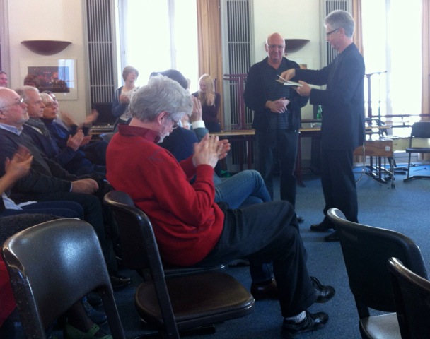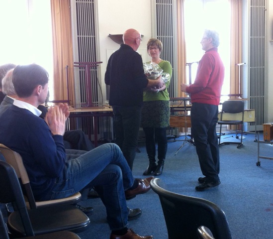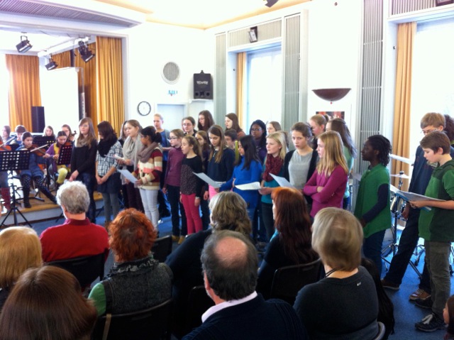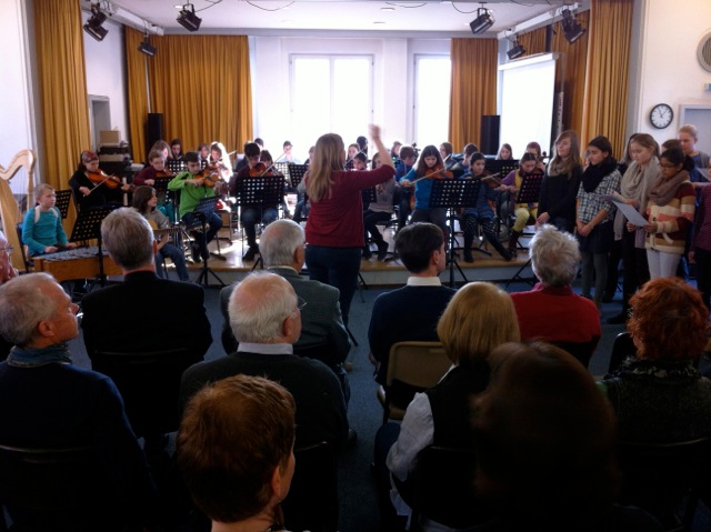 Seine Verabschiedung machte das auch deutlich: Das Schulorchester – jetzt unter Leitung von Frau Julia Weber – bot zwei Stücke dar; der Schulleiter Peter Geckeis dankte ihm im Namen des Ministers und verabschiedete ihn stil- und würdevoll im Kreise der Kolleginnen und Kollegen. Eine tolle Rede des Personalratsvorsitzenden Karl-Dieter Dörr schloss sich an, bevor die Kolleginnen und Kollegen aus dem Fachbereich Musik Julia Weber, Manuela Simmler, Matthias Ernst und Fedor Podranski ihren Ewald Becker mit einer Neuvertextung des Freddy Quinn Schlagers Heimweh voller Wehmut mit So schön, schön war die Zeit unter großem Beifall verabschiedeten. Herr Becker bedankte sich sehr herzlich bei allen Anwesenden und beschloss den offiziellen Teil der Verabschiedung mit einem kurzen bebilderten Überblick über sein Schulleben vom ersten Schultag bis heute.