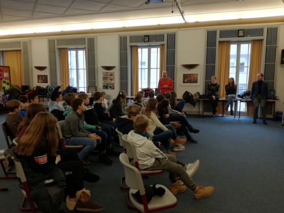 Warum diese nicht mit Profisängern klären? Da kam der Anruf von Frank Wörner gerade zur rechten Zeit. Seine Student*innen stünden kurz vor ihren Semesterprüfungen und bräuchten dringend ein Podium, ihre Programme vorzusingen. Die 6a war begeistert von dem Vorschlag und freute sich ab da sehr auf den Besuch der jungen Sänger*innen. Mit französischen und modernen Liedern, Opern- und Oratorienarien und Auszügen aus Operetten im Gepäck kamen sie am vergangenen Freitag in der Aula an. Die 6a lauschte den verschiedenen Stimmen in den knapp 70 Minuten ganz aufmerksam und kam zwischen den Stücken immer wieder ins Gespräch mit den Sänger*innen und Prof. Wörner.