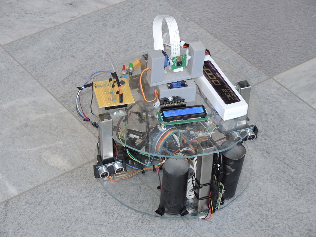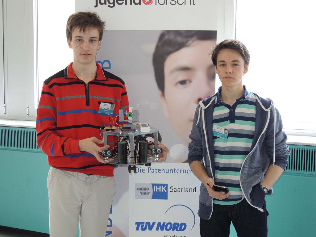 “Wir haben mit Hilfe von einem Raspberry Pi und einem Arduino einen Haushaltsroboter gebaut. Er besteht aus Teilen, die wir einerseits selber modelliert und mit einem 3D-Drucker gedruckt und andererseits unter Verwendung von anderen Materialien gebaut haben. Alle zum Bau verwendeten Teile haben wir selbst bearbeitet. Der Roboter kann von einer selbst programmierten Internetseite oder per Sprachanweisung gesteuert werden. Zudem ist es unser Ziel gewesen, einen möglichst preisgünstigen Roboter zu entwerfen, Durch die Ausstattung einer Reihe von Sensoren erkundet er seine Umgebung und schickt zeitgleich Bilder über das Internet an seinen Benutzer. Der Roboter dient außerdem der Steuerung von Funksteckdosen, um ein SmartHome zu realisieren. Ein weiterer Teil unseres Projektes ist die Kommunikation zwischen Roboter und Mensch. Unser Haushaltsroboter versteht eine Vielzahl an Redewendungen, auf die er immer eine schlaue Antwort geben kann oder entsprechend die Hausautomatisierung übernimmt.