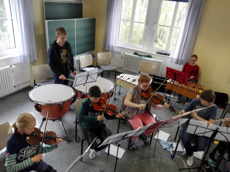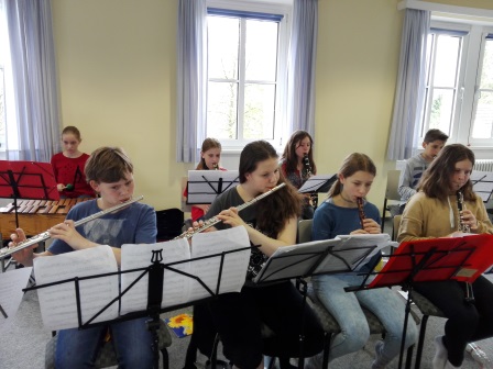 Dort begann nach einem kurzen Erkundungstrip und dem Einräumen der Zimmer schon die erste Probe. Insgesamt probten wir viel, doch durch die Pausen und die lustigen Spiele verging die Zeit schnell. Aber wie man immer wieder sieht (und auch bald hört): üben lohnt sich. Wie von der Orchesterleiterin Julia Stodtmeister bestätigt, haben wir uns insgesamt unglaublich gesteigert.