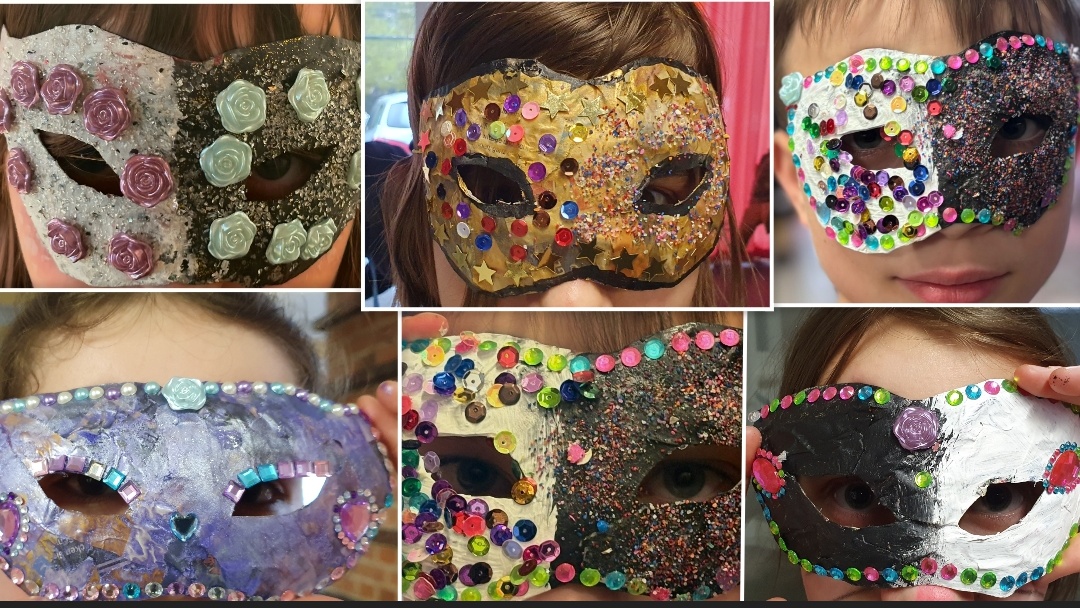 Unter professioneller Anleitung führten wir einen Kreativworkshop durch. Passend zum Anlass fertigten wir venezianische Faschingsmasken aus Pappmaché an. Aber auch das Bemalen von Steinen und Integrieren in Kunstwerke waren Inhalte des Projektes. Wir danken Anette Violaine Böhme für das kreative Projekt und freuen uns schon auf die Sommerferien mit ihr.