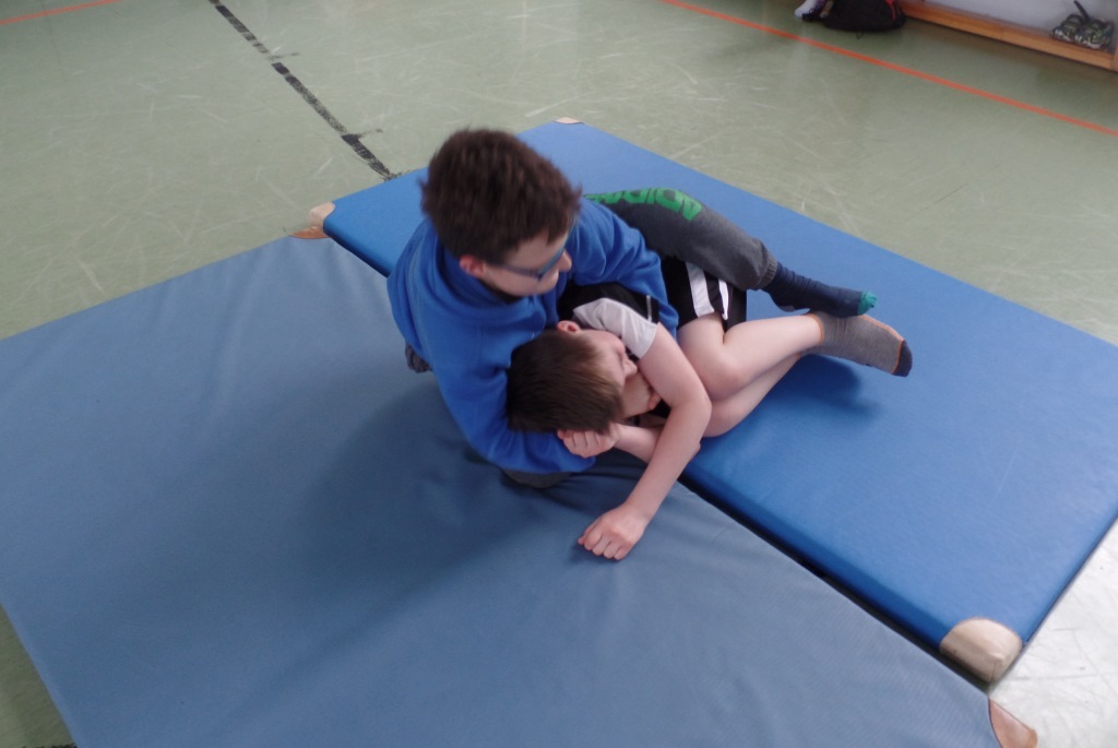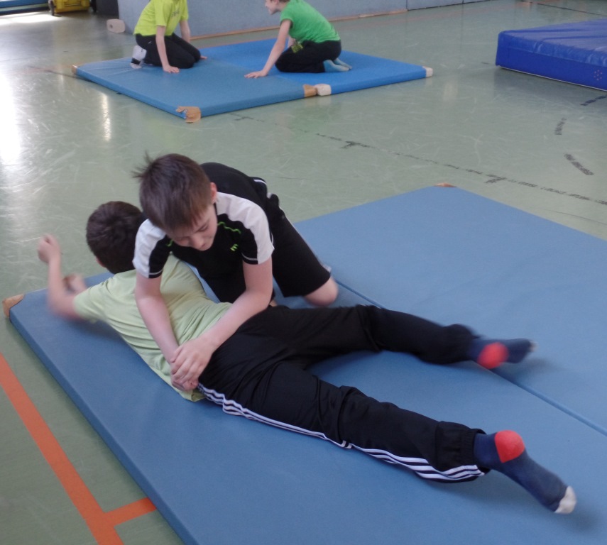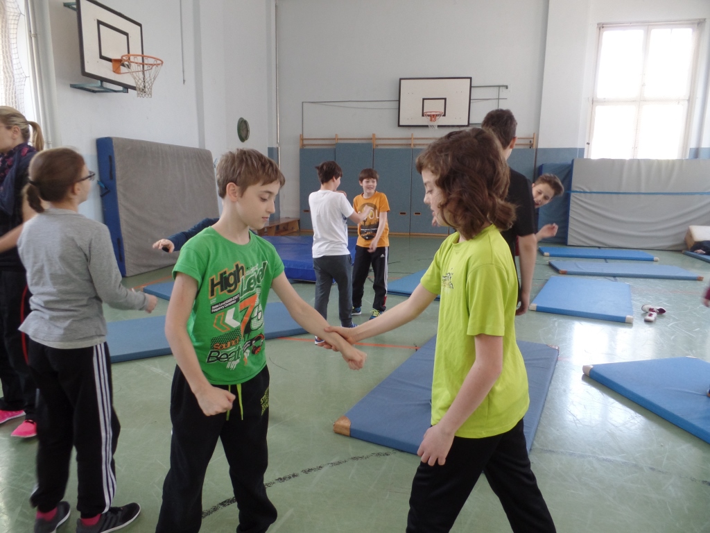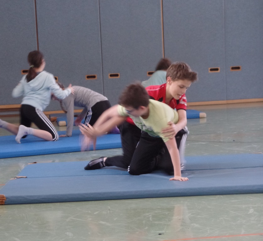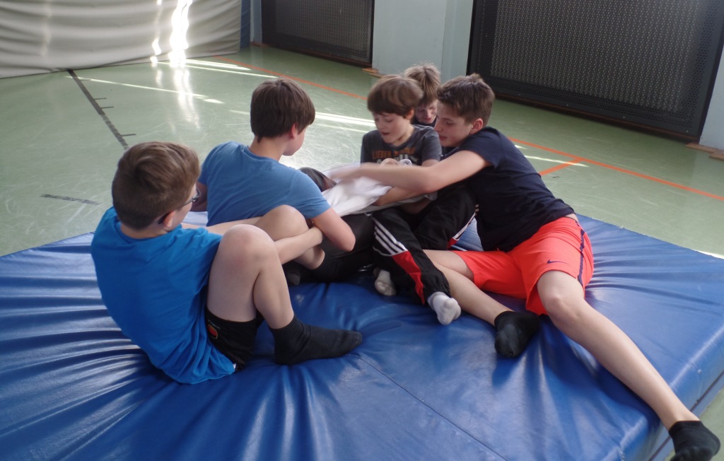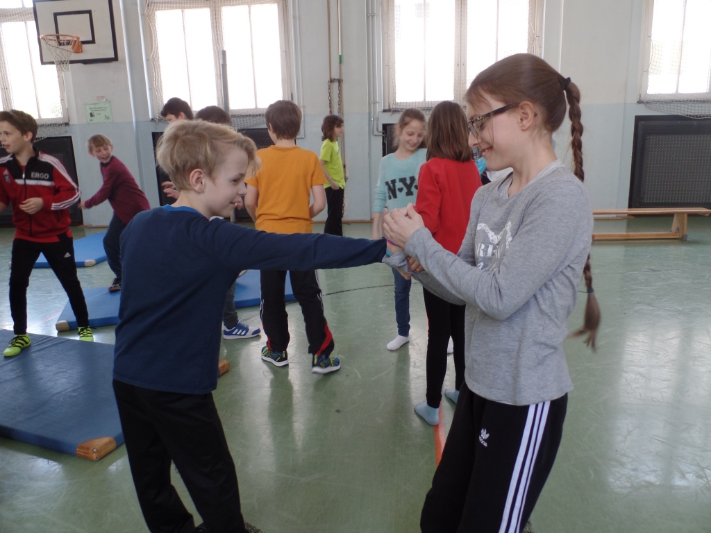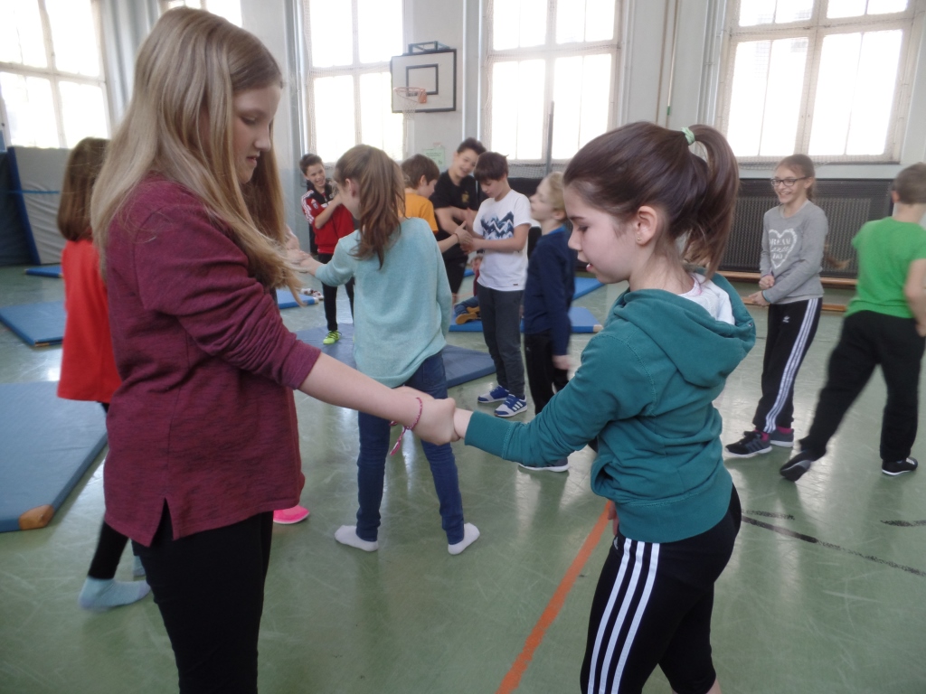 Unser Projekt in der zweiten Woche (18.04.2017 bis 21.04.2017) „Raufen nach Regeln“ diente schwerpunktmäßig der Gewaltprävention. Wir lernten, dass gegenseitiger Respekt beim Raufen sehr wichtig ist und dass Stopp auch Stopp bedeutet. Trainiert wurde hierbei auch das Einhalten von vorgegebenen Regeln und Grenzen. Mit Hilfe von Teamspielen wurde das Wir-Gefühl der Gruppe gestärkt. Außerdem schulten wir unsere Geschicklichkeit und unsere Konzentration. Danke an Frau Kathrin Herbst für das lehrreiche, sportliche Projekt!