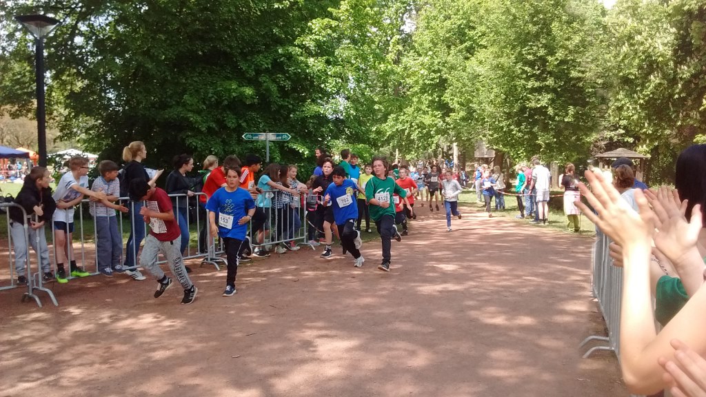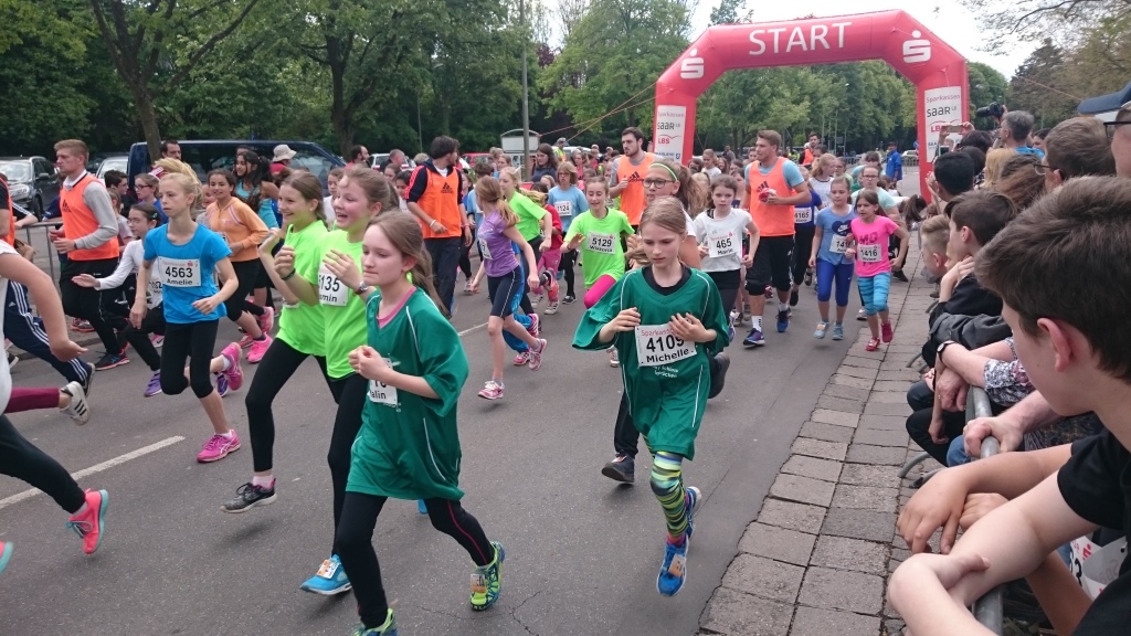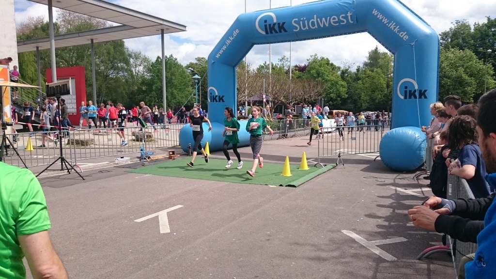 Am 12. Mai war es endlich soweit. Es sollten die Schullaufmeisterschaften in Merzig stattfinden, bei denen alle interessierten Schüler der Klassenstufe 6 unserer Schule teilnehmen konnten. Zunächst trafen wir uns vor der Schulturnhalle und gingen von dort aus zum Hauptbahnhof. Dort bekamen wir unsere Trikots und fuhren mit dem Zug nach Merzig, wo dann später auch der Lauf stattfand. Als wir aus dem Zug stiegen strahlte uns die Sonne warm entgegen. Mit vielen anderen Klassen suchten wir uns zuerst einen Platz, an dem wir unser Gepäck ablegen konnten. Frau Schollenberger ging gleich mit einem Teil von uns in den Ziel- und Startbereich. Währenddessen erkundete der restliche Teil in Dreiergruppen das Gelände. Als wir uns wieder zusammen am Treffpunkt einfanden gaben uns Frau Schollenberger und Frau Schäfer die Startnummern und Chips, die unsere Laufzeit maßen. Unsere Lehrerinnen halfen uns die Chips mit Kabelbinder und die Starnummern mit Sicherheitsnadeln zu befestigen. Nun ging der andere Teil von uns an den Start. Frau Schollenberger erklärte genau von wo aus wir starten sollten und ggf. Hilfe bekommen. Um 11:30 Uhr begannen wir uns aufzuwärmen, um um 12:15 Uhr zu starten. Die Jungen wollten uns anfeuern. Dann erschallte der Startschuss. Da wir ganz hinten starteten, kämpften wir uns rasch nach vorne. Die Strecke war sehr flach und größtenteils asphaltiert. Als das Ziel nur noch ein paar Meter vor uns lag liefen wir unter großem Jubel der anderen Klassenkameraden ins Ziel. Dort lagen wir uns erschöpft in den Armen und gaben die Chips ab. Danach feuerten wir noch die anderen drei Läufe an und einige aßen noch ein Eis. Schließlich fuhren wir mit dem Zug zurück. Wir alle fanden den Lauf sehr schön und beschlossen dieses Ereignis nächstes Jahr zu wiederholen.