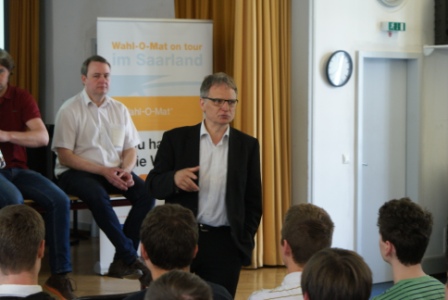 Die Schülerinnen und Schüler der Klassenstufe 11 nahmen an der Veranstaltung rege teil, die von Herrn Burkhard Jellonek (Landeszentrale für politische Bildung im Saarland) moderiert wurde.