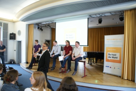 Am Donnerstag, den 22. Mai 2014 fanden die Politiker den Weg in die volle Schulaula.