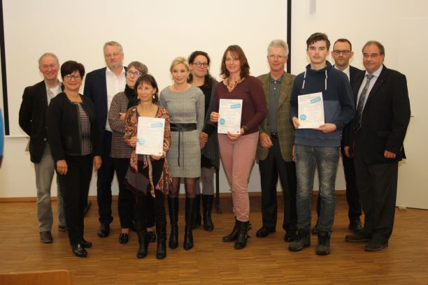 Der Schirmherr und die offiziellen VertreterInnen des Wettbewerbs sowie unserer beiden Schulen: